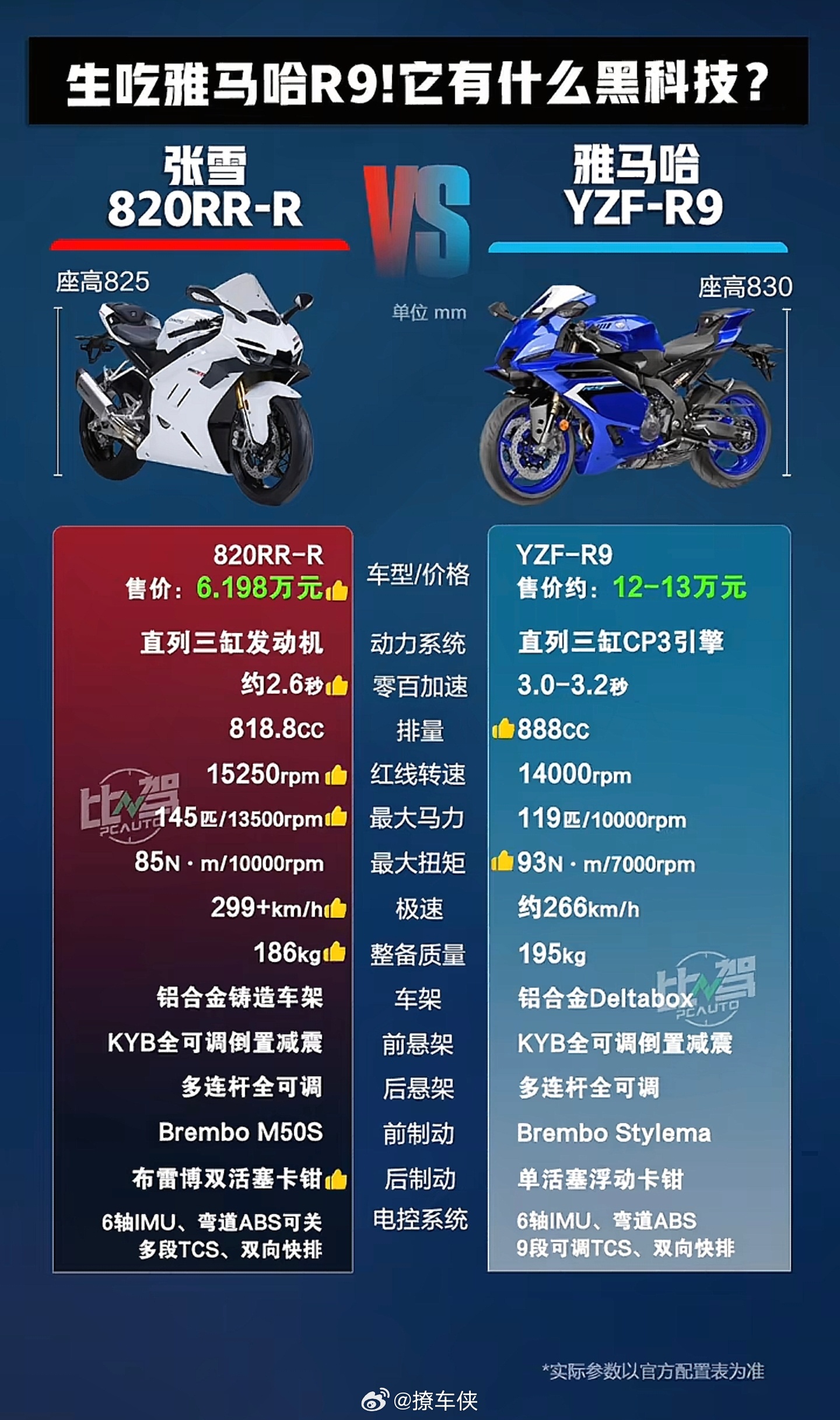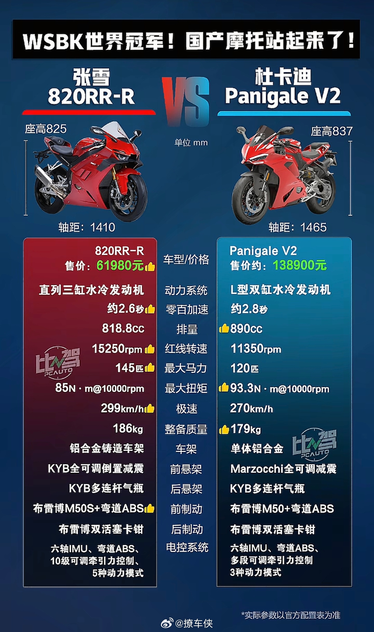 张雪造的820和国际大牌雅马哈杜卡迪相比,售价便宜一半多,性能上更强,夺冠后销量