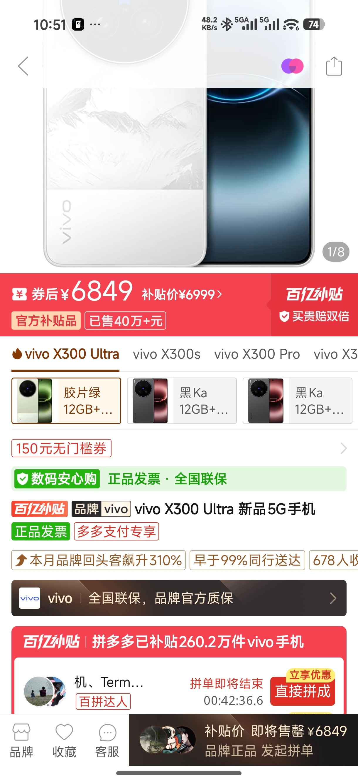 啊不是,X300ULTRA这才几天就pdd百亿补贴降价150了啊