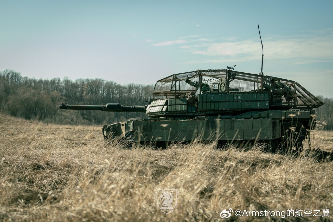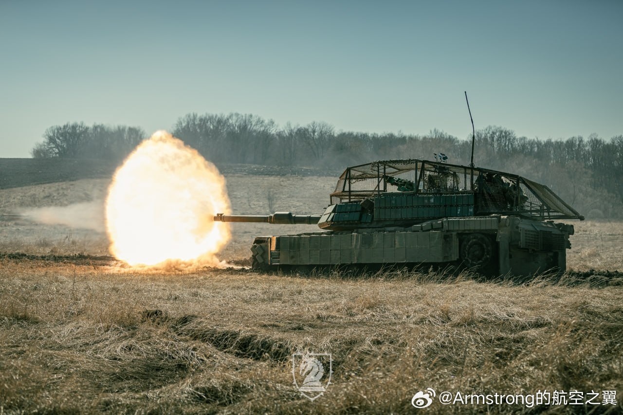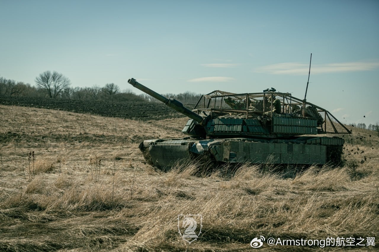 俄乌局势新进展 乌军第47机械化旅M1A1SA装甲的最新形态,炮塔顶部的防无人机笼覆盖到了发动机舱