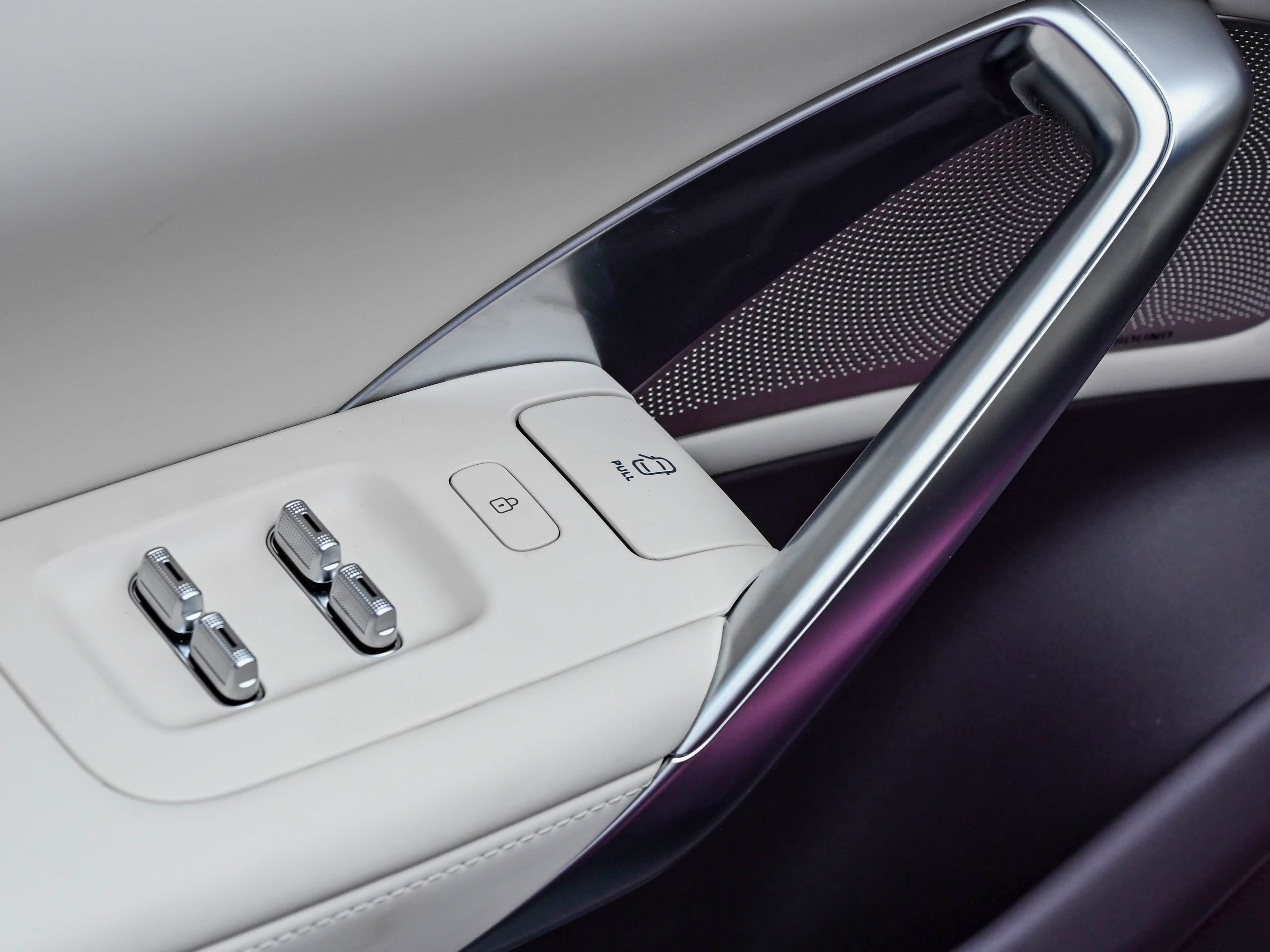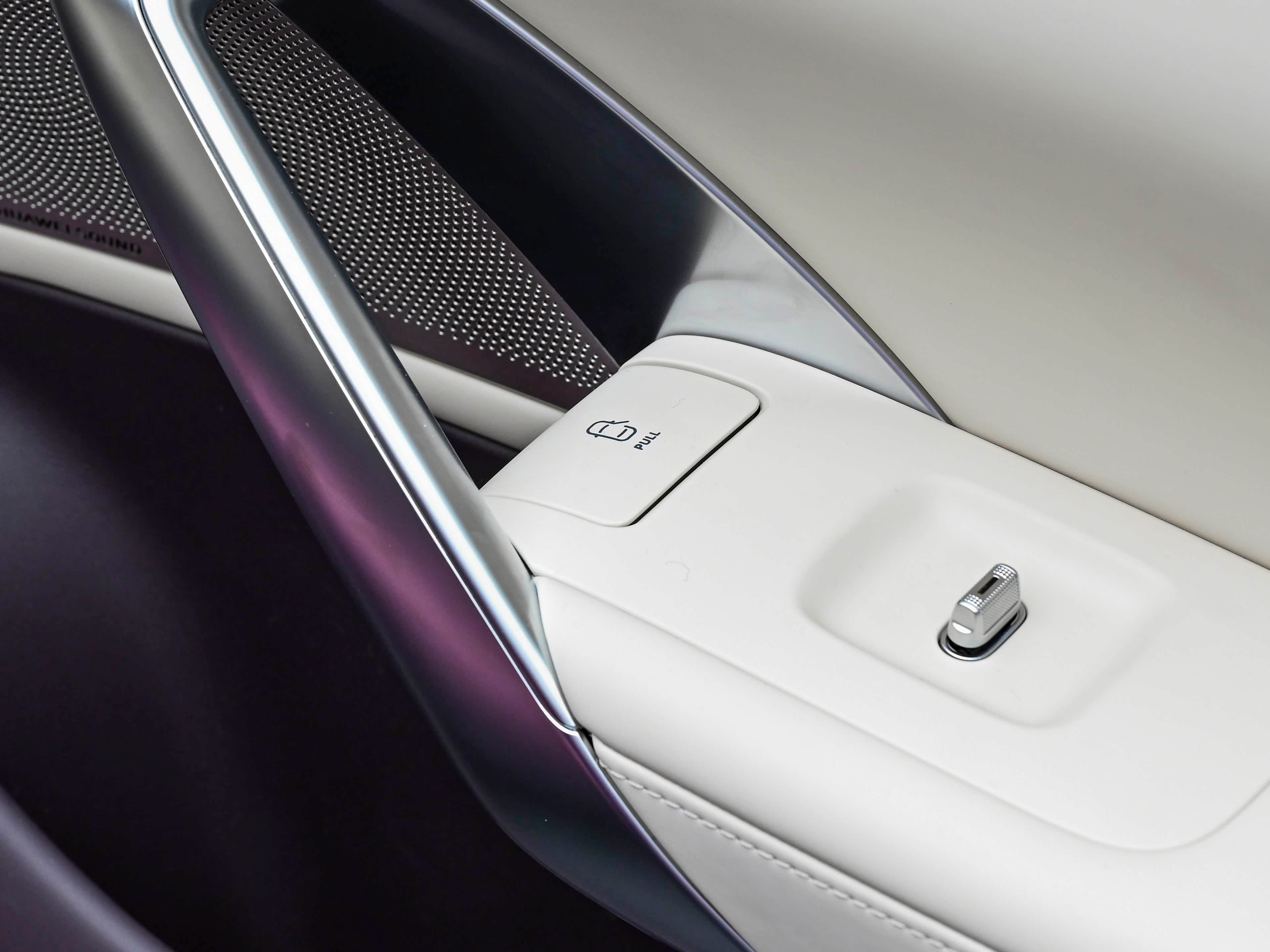 一个位置集成两段式门拉手,往上轻拨是电控开门,再往上拉是机械开关