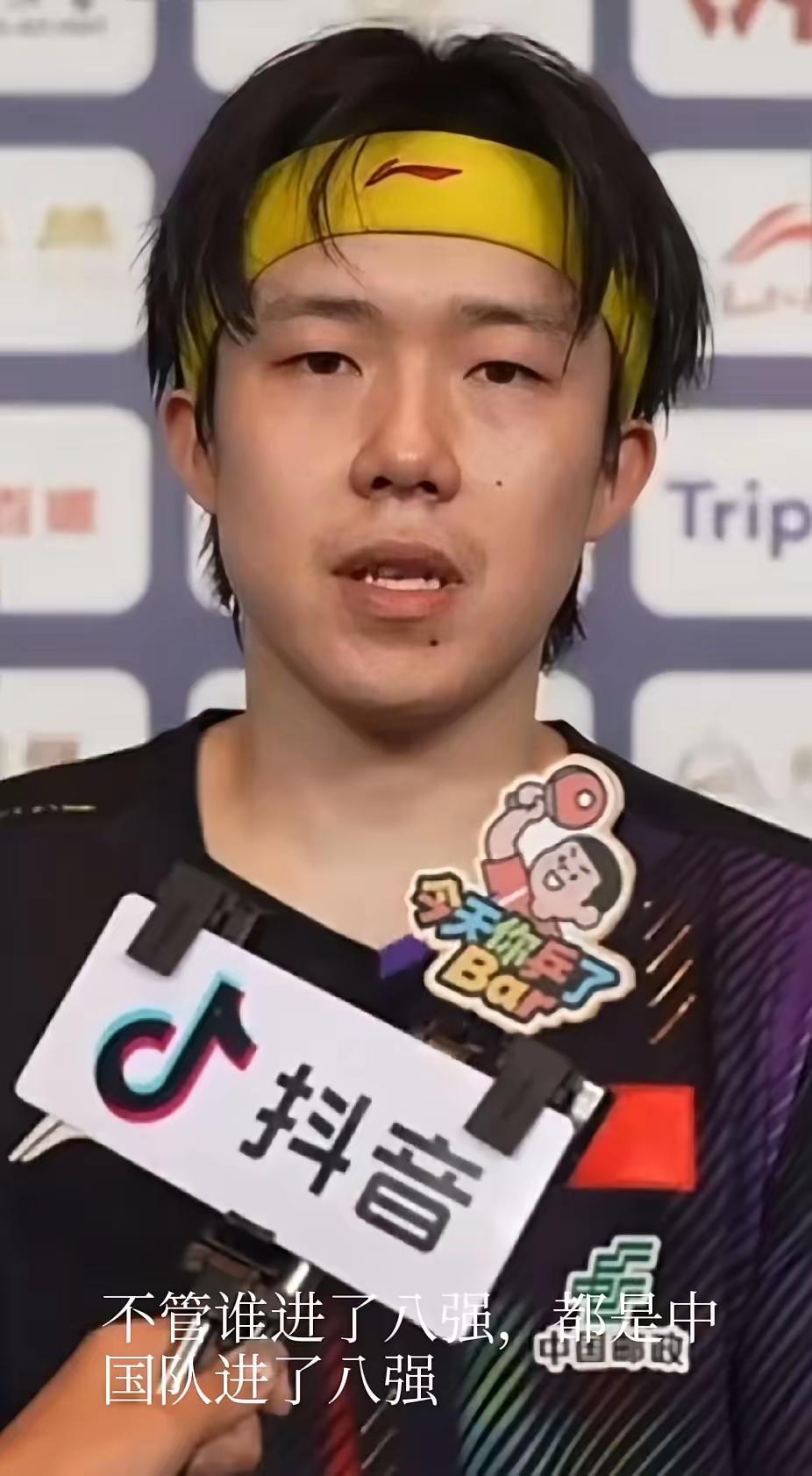 王楚钦赛后采访硬核回应记者 抖音的这位记者被楚钦上了一课。 在昨天的赛后采访时, 这位女记者在问道: “中国男队就剩楚钦一根独苗时”笑了一下, 这个带有嘲笑意味的一笑被楚钦捕捉到, 他马上反击道: “首先我觉得这没什么可笑的, 作为中国运动员每个人都尽了全力。 不能以比赛成绩嘲笑运动员。 不论谁进了八强,都是中国队进了八强。 这是竞技体育,场上没有常胜将军。” 楚钦这番话铿锵有力,掷地有声。 他有理有据地维护了其他队员。 竞技体育从来都不是单打独斗,每一名国乒队员都经过日复一日的高强度训练,赛场失利并非不努力,只是临场状态、战术调整存在变数。 国乒男队队员平日里并肩作战,一起备战、互相陪练,团队荣誉远高于个人成绩,楚钦的回应,守住的是整个队伍的尊严。 赛场之上,输赢本就是常事,顶尖运动员也无法保证每一场都保持最佳状态,用一时的成绩嘲讽选手,本身就违背了体育采访的职业素养。 作为体育记者,本职是客观报道赛事、尊重运动员,而非带着主观情绪做出不当反应,这一课也给所有媒体人提了醒。 楚钦年纪轻轻,却有着极强的团队意识和格局,面对不当言行不卑不亢,既维护了队友,也展现了国乒队员的风骨。 真正的体育精神,是尊重每一份付出,接纳每一次输赢,运动员拼尽全力就值得尊重,任何轻视与嘲讽,都不该出现在体育赛场。