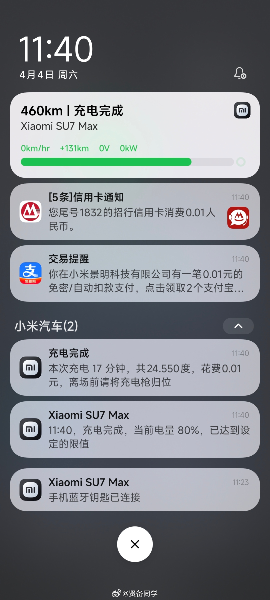 通过小米汽车 App 扫码,自动抵扣,非常丝滑!