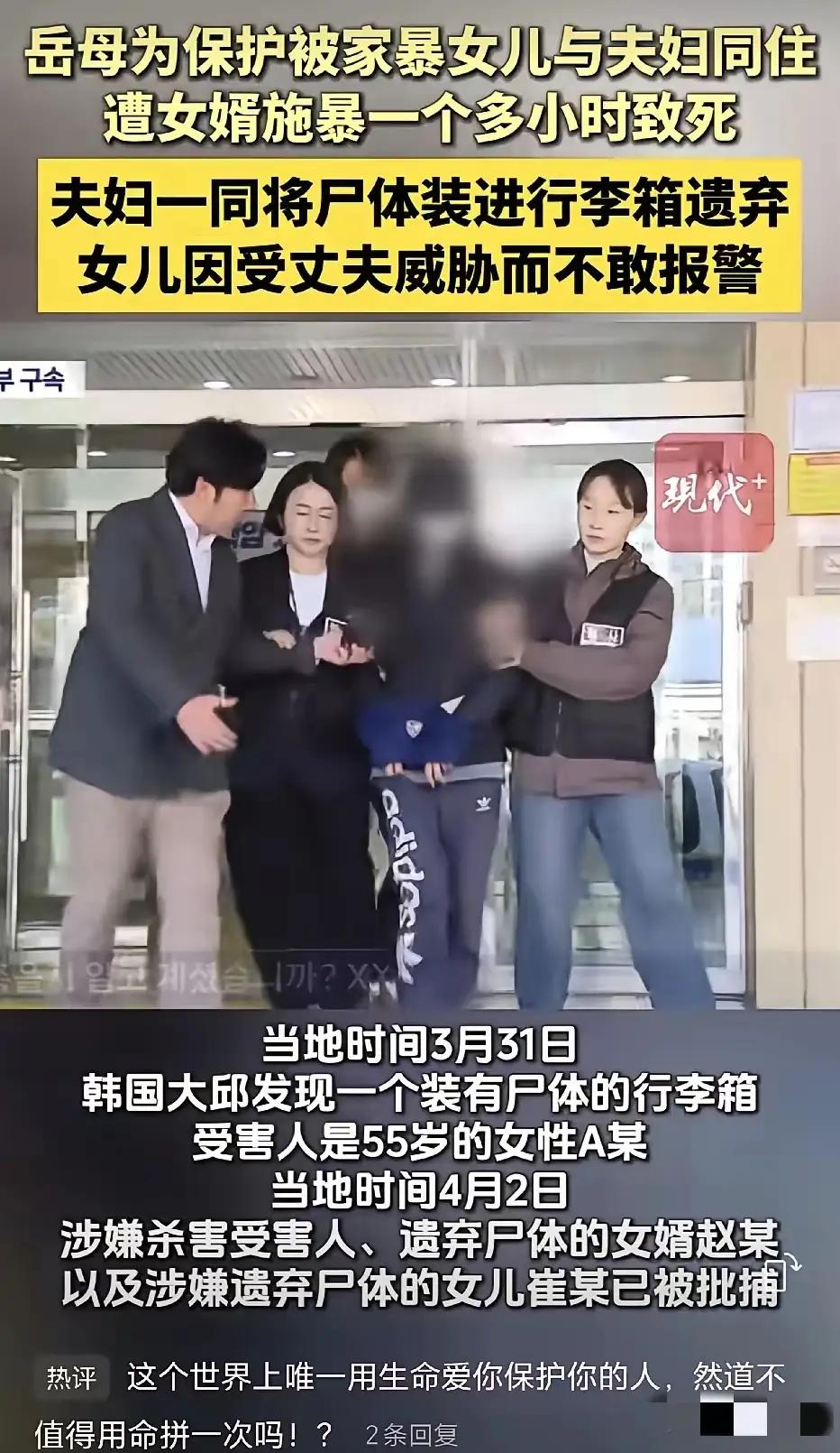 韩国一位母亲,发现自己的女儿经常被女婿家暴,为了保护女儿,她从去年9月份起,便搬到女儿家去住,从此岳母,女儿,女婿三人生活在一个屋檐下了 做出这个决定,这位母亲心里翻涌的全是心疼与决绝。 她不是没想过其他办法,也不是愿意放下自己安稳的生活,挤进女儿拥挤的小家,忍受三人同住的尴尬,可看着女儿身上反复出现的伤痕,听着女儿哽咽着诉说被家暴的经历,她根本没法坐视不管。 女儿结婚三年,起初和女婿感情看似平和,婚后一年生下孩子后,女婿的脾气变得愈发暴躁,稍有不顺心就对女儿动手,从最初的推搡,到后来的拳打脚踢,家暴行为一次比一次过分。 女儿一开始不敢跟母亲说,怕母亲担心,也怕外人笑话,更想着为了孩子,想维持这个看似完整的家庭。 她偷偷藏起身上的伤口,每次被问起都谎称是自己不小心磕碰,可脸上的淤青、手臂上的抓痕根本藏不住,细心的母亲还是发现了端倪。在母亲的反复追问下,女儿才哭着说出被家暴的真相,那一刻,母亲的心像被针扎一样疼,她后悔自己没能早点发现,更恨女婿的狠心。 按照常人的想法,遭遇家暴第一时间应该报警,或是直接劝女儿离婚,可在韩国当下的社会环境下,很多家暴受害者维权远比想象中艰难。 这位母亲也尝试过报警,可女婿每次事后都会道歉求饶,拿出各种理由辩解,加上没有特别严重的伤情记录,警方大多以家庭纠纷为由调解处理,根本没法从根源上解决问题。她也劝过女儿离婚,可女儿顾虑太多,孩子年纪尚小,离不开父亲的陪伴,加上韩国社会对离异女性的包容度不高,女儿担心离婚后独自带娃生活艰难,一直狠不下心做决定。 一边是女儿持续遭受家暴,随时可能面临更严重的伤害,一边是女儿的犹豫和现实的阻碍,这位母亲别无选择,只能用最笨也最直接的方式保护女儿——搬进女儿家,寸步不离地守着她。 她清楚,三人同住会有诸多不便,家里的氛围会变得压抑,甚至会引来邻里的议论,可只要能让女婿有所顾忌,不再对女儿动手,这些委屈她都能忍。 搬过去之后,这位母亲几乎时刻盯着女婿的举动,女婿在家时,她从不离开女儿身边,吃饭、做家务都陪着女儿,一旦女婿情绪不对劲,她就立刻站出来阻拦,用自己的方式护住女儿。 起初女婿还心存不满,甚至对岳母出言不逊,可看着岳母态度坚决,丝毫没有退让的意思,他也不敢再像之前那样肆意动手,女儿遭受家暴的次数确实少了很多。 可这种同住的方式,终究只是权宜之计,没法彻底解决问题。这个小家的氛围始终紧绷,三人同在一个空间里,没有丝毫温情,只有无尽的尴尬和压抑。女儿看着母亲为了自己牺牲晚年生活,整日提心吊胆,心里满是愧疚,常常夜里偷偷哭泣。 母亲也明白,这样的生活不是长久之计,她只是在等一个机会,等女儿彻底想通,愿意拿起法律武器保护自己,等真正能摆脱家暴阴影的那一天。 据韩国女性家庭部发布的最新数据显示,韩国家暴事件发生率常年居高不下,超六成受害者选择隐忍,维权流程繁琐、社会偏见、子女抚养等问题,成为她们摆脱家暴的主要阻碍。这位母亲的做法,看似无奈,却是很多家暴受害者家属的真实缩影,她们没有强大的后盾,只能用最朴素的方式守护亲人。 家暴从来都不是家庭私事,而是触犯法律的恶劣行为,受害者不该隐忍,家属的守护值得心疼,但更需要完善的法律保障和社会救助体系,才能真正让受害者脱离苦海。这位母亲用自己的陪伴筑起一道防护墙,可这道墙终究不够坚固,唯有勇敢反抗、依法维权,才能真正终结家暴带来的伤害。 各位读者你们怎么看?欢迎在评论区讨论。