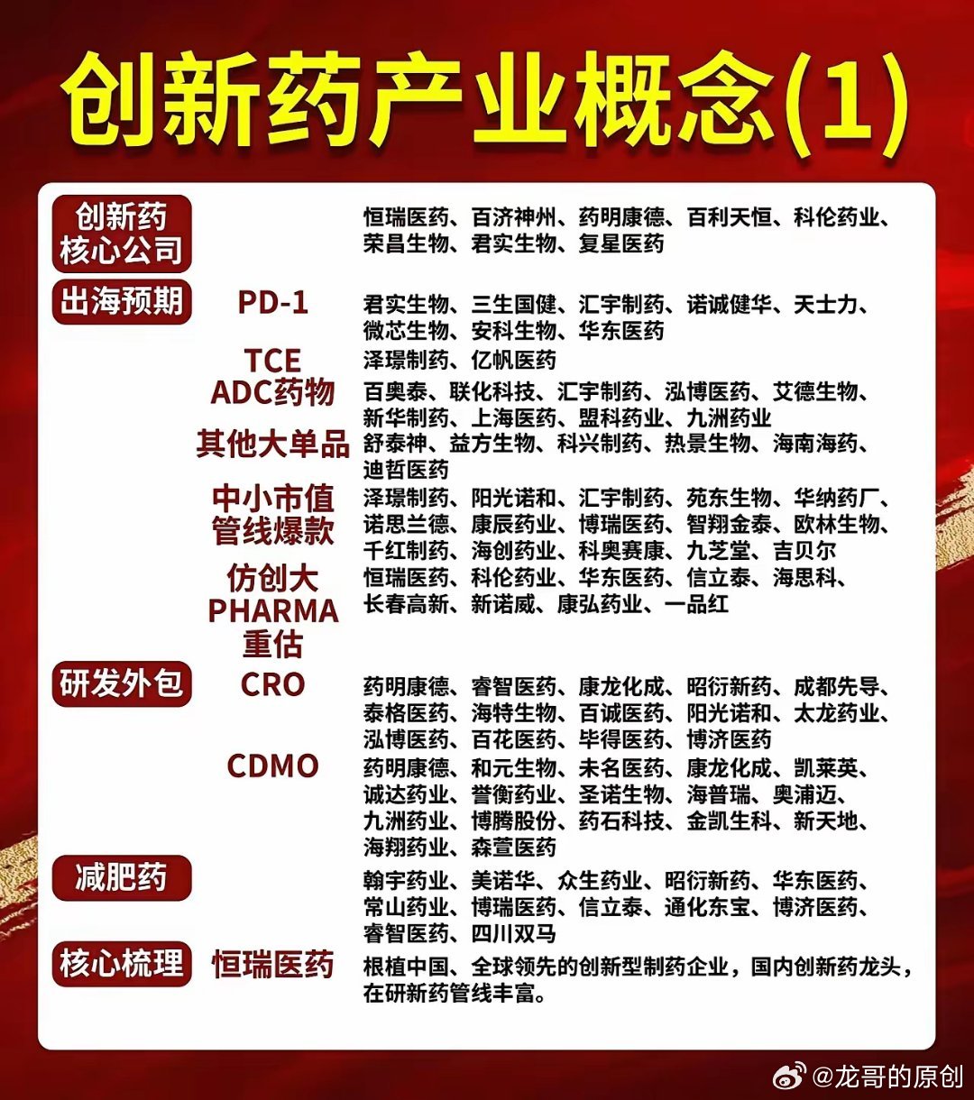 创新药行业景气度持续上行,核心赛道全面开花:1. 创新药研发:龙头管线丰富,出海预期明确2. CRO/CDMO:研发外包需求旺盛,全球份额持续提升3. PD-1/ADC等细分:大单品放量,中小市值管线迎来爆发