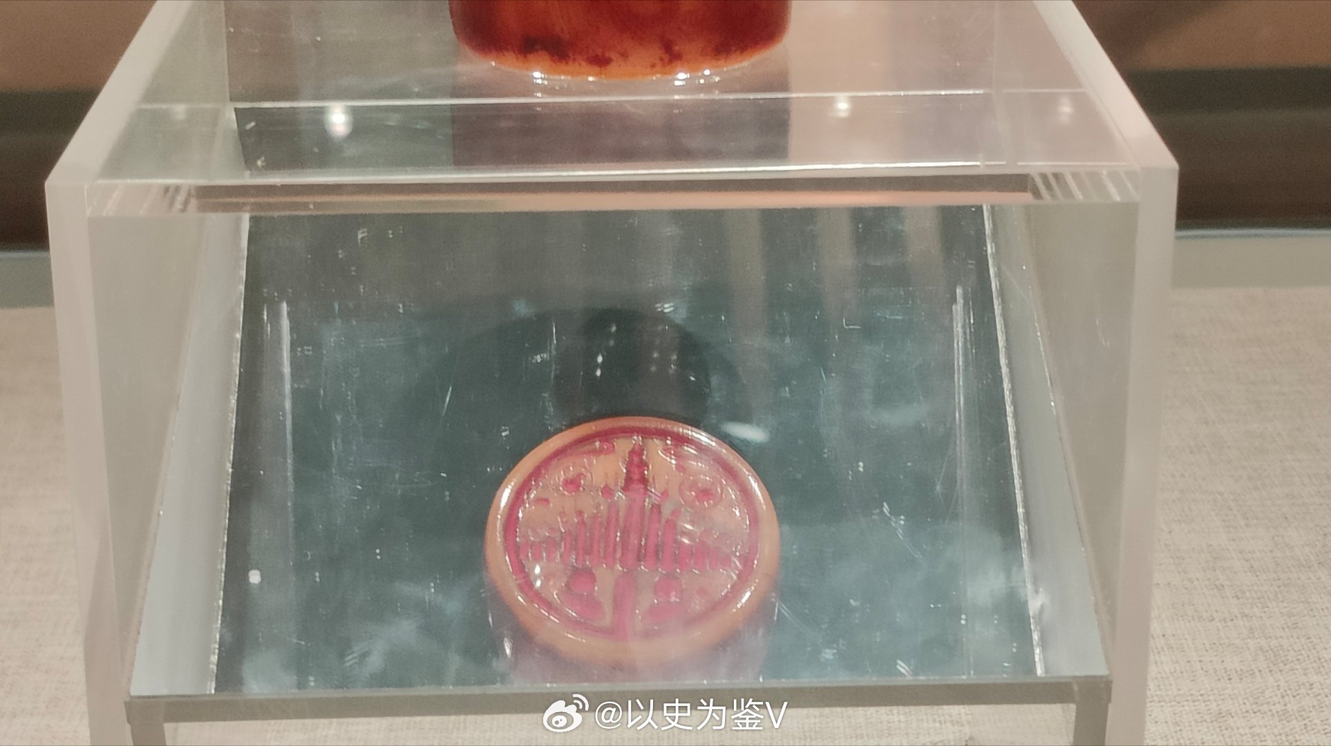 史书记载,这枚圆形印章背景是大海,上面是日月图案,中间是须弥山,须弥山周围有七重铁围山,下方海域中还有鲸鱼……(仔细看印章的图案,和史书记载是一致的)“印宽三指,中刻须弥山,周以铁围山七座,其下有海,有三柱,有鳌鱼一对,其上有浮图、日、月。”——《泐史》