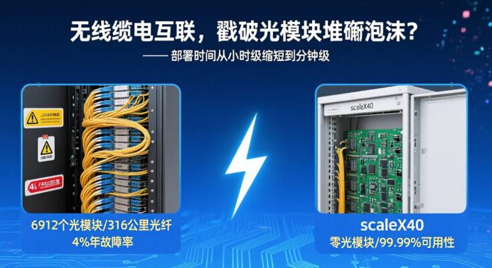 无线缆电互联,戳破光模块堆砌泡沫? 看到某 384 卡超节点的配置我很震惊:光模块近七千个,光纤总长 316 公里,相当于北京到石家庄的距离塞进一个机柜。这哪里是算力集群,更像光纤博物馆。 行业如今疯狂堆光模块、拼参数,却很少提及真实隐患:光模块年失效率约4%,6912 个意味着每年要更换近300个。故障随时发生,训练任务说断就断,一次中断重跑就要浪费几十小时,算力成本大幅流失。 更无奈的是,行业默认这种问题无解,只能靠软件冗余弥补硬件缺陷。有运维坦言,修的时间比跑的时间还长,一边是算法团队催进度,一边是机房里不停插拔光纤。 4 月 2 日工信部发文,提出到 2028 年底建成普惠算力体系,降低中小企业使用门槛。可当前这种高故障、高运维难度的超节点,连大厂都头疼,没有专业运维团队的中小企业根本无法承受。 曙光 scaleX40 给出了新思路:采用正交无线缆电互联架构,完全不用光模块。单节点支持40张GPU,部署从小时级缩短到分钟级,系统可用性从 99.9% 提升至 99.99%。标准19 英寸、16U设计,无需改造机柜机房,可直接入驻现有数据中心。 普惠算力,核心是普惠运维。中小企业需要的是开箱即用、稳定可靠的方案。算力下半场,比拼的不再是谁光模块更多,而是谁能让系统真正稳定运行。 普惠算力 中科曙光 scaleX40 电联vs光联