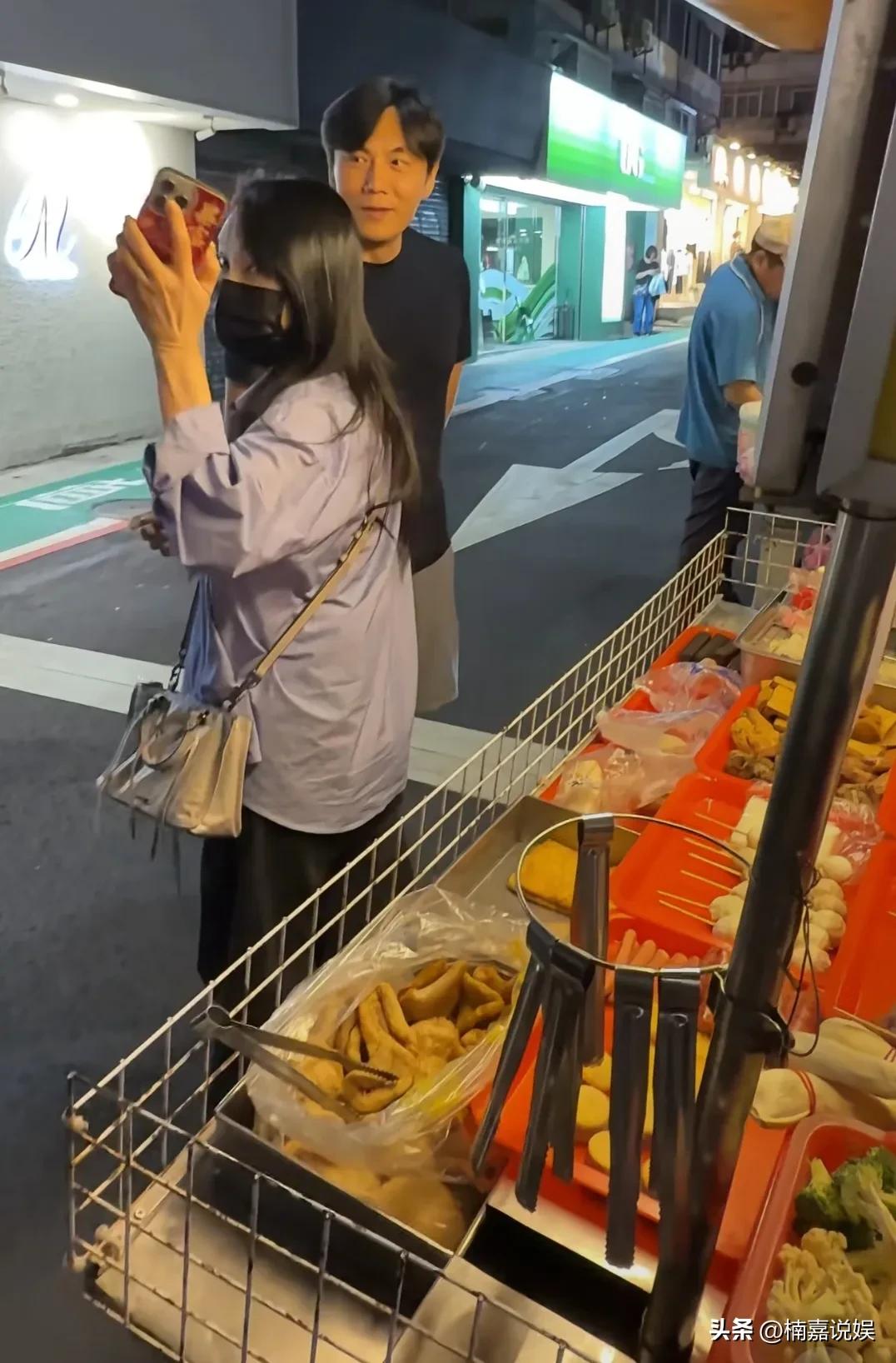 秦昊和老婆伊能静,现身台北夜市吃手抓饼。 他穿着黑色短袖灰色短裤,个子高高瘦瘦的,肤色有点黑。 伊能静戴着大口罩,长发披肩,穿着浅蓝色衬衫配黑色裤子,身材苗条,看脸还挺年轻,但是手上暴起的青筋暴露了年龄。 夫妻俩穿搭很随意,也都挺低调的。但是相比于在内地的高热度,前呼后拥的粉丝和拍照、合影,俩人在台北夜市就相对“冷清”了,更自在舒服。