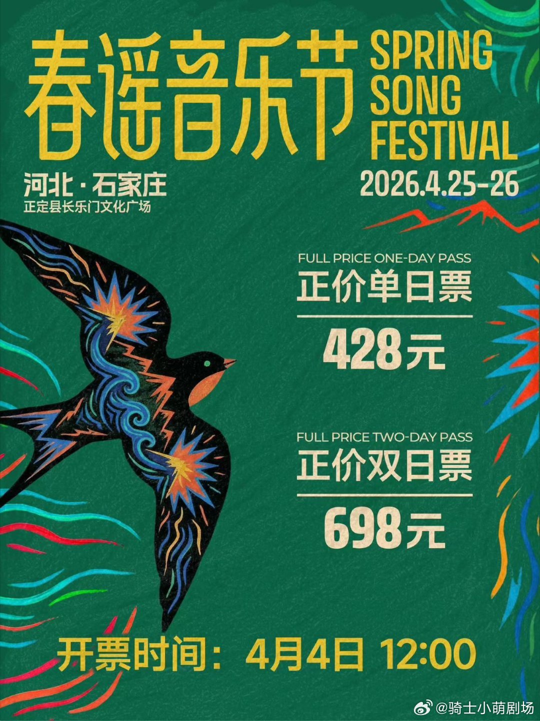 春谣音乐节石家庄站正式开票许巍、老狼、高旗 & 超载领衔,20 + 组乐队集结正定长乐门,4.25-4.26 连嗨两天!古城墙下听摇滚民谣,春日现场氛围感拉满,快约搭子冲票,一起大合唱!!春谣音乐节正式开票春谣音乐节