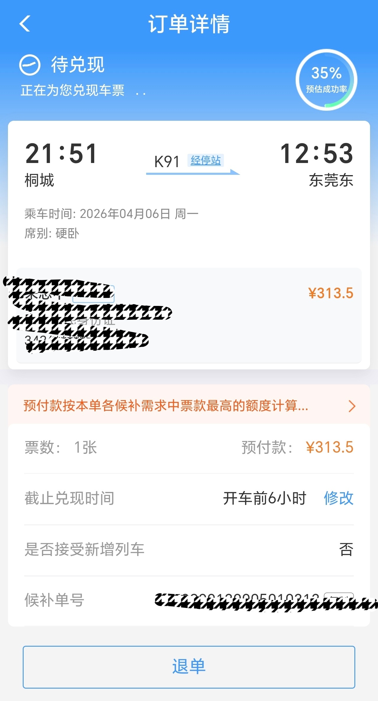 现在知道如何购买到火车票了!这个清明节买车票买不到两个字:头疼!!!结果意外发现如何购买了,候补车票是买不到的,从开票那天就候补都买不到!结果我直接搜索始发站再购买就可以了,虽然多付费100+,但是比买不到好吧候补现在基本买不到了,我在携程加了55都买不到!