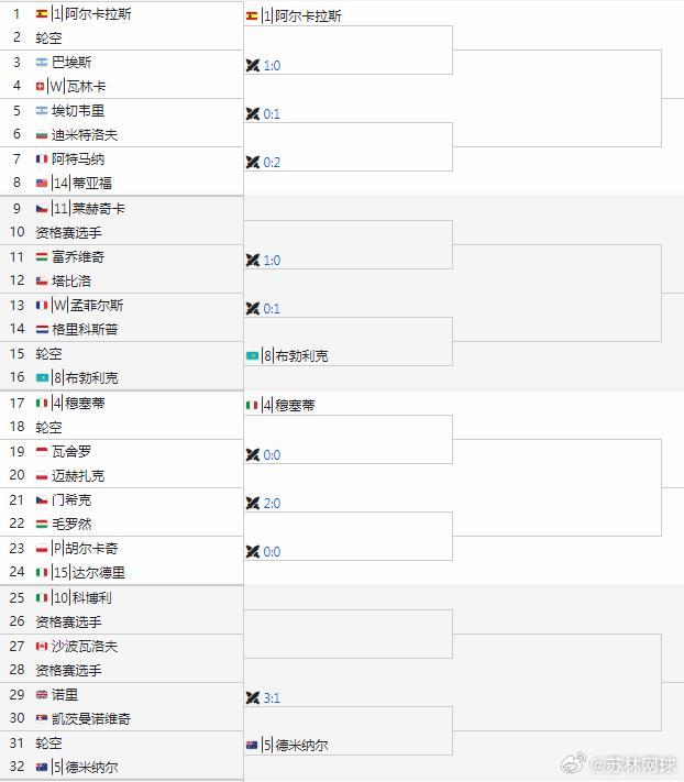 蒙特卡洛大师赛签表出炉阿卡拉斯的卫冕之路R1 - 轮空R2 - 贝兹/瓦林卡R3 - 蒂亚福/ 迪米特洛夫 / 埃切维里 / 阿尔特曼尔QF - 布勃利克/莱赫卡SF - 穆塞蒂 / 科博利 / 德米纳尔F - 辛纳 / 兹韦列夫 / 梅德韦杰夫能卫冕成功吗?ATP网坛风云