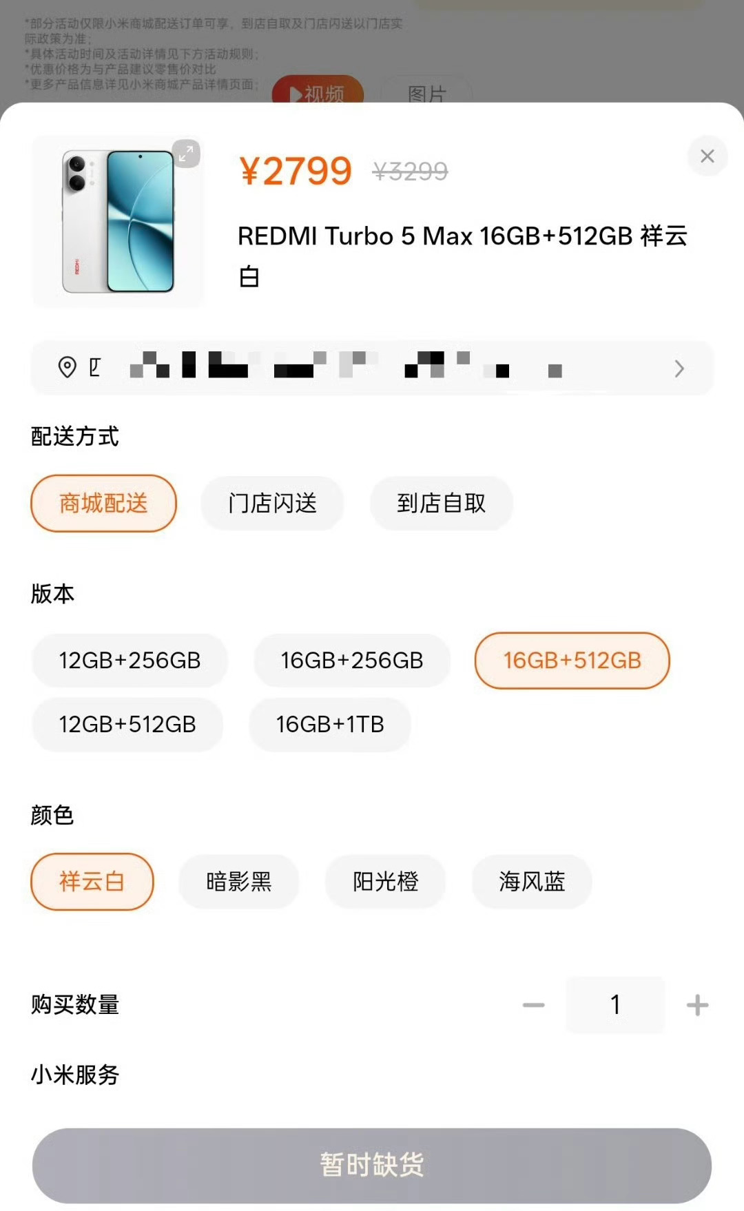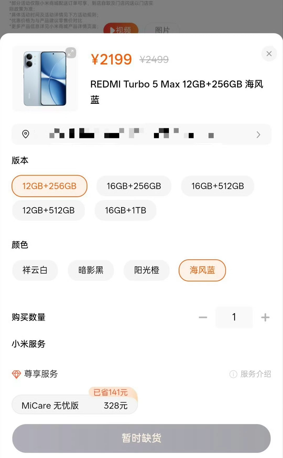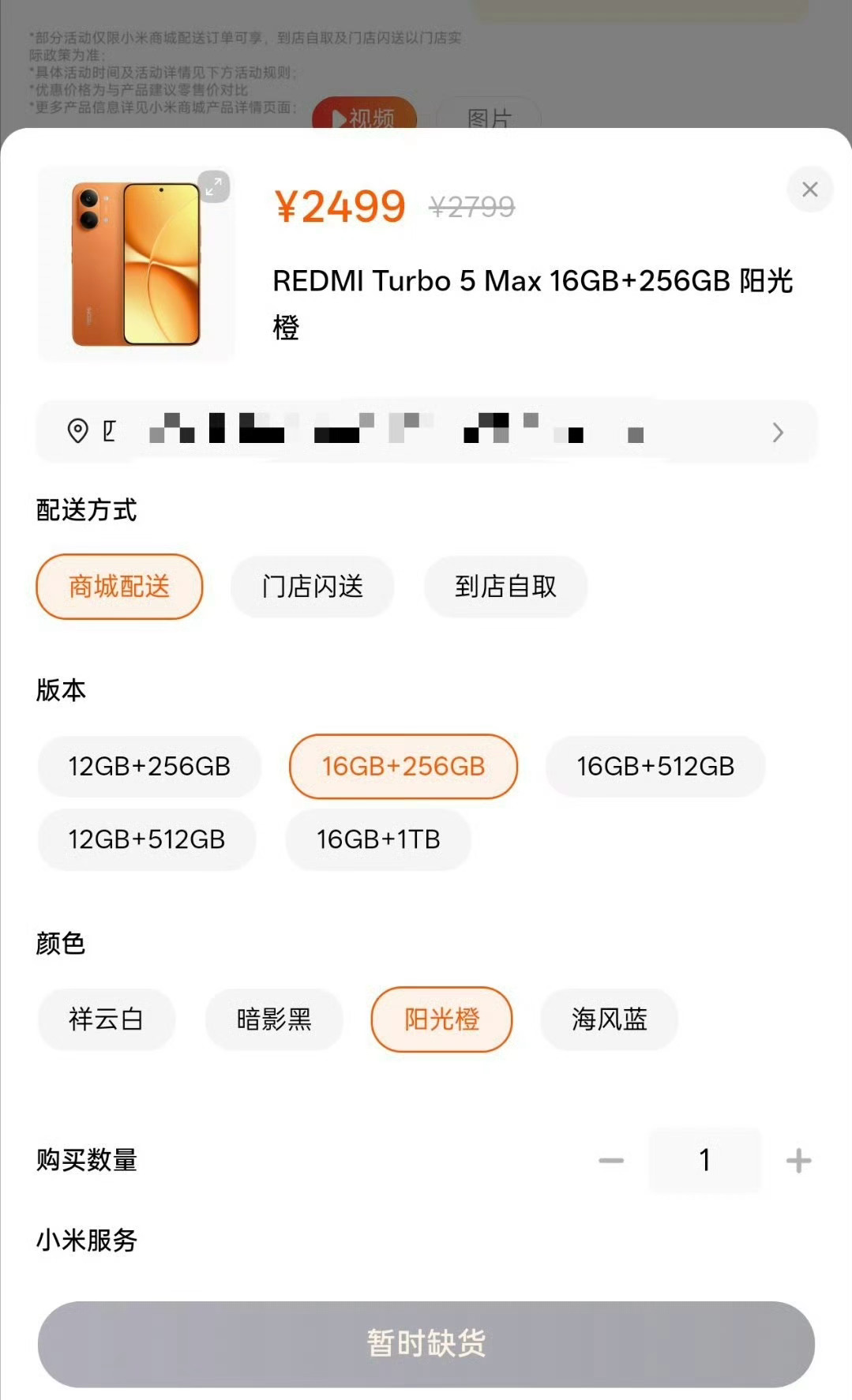 官宣将在 4 月 11 日涨价之后,REDMI Turbo 5 Max 小米商城全版本、所有颜色,全部售罄。