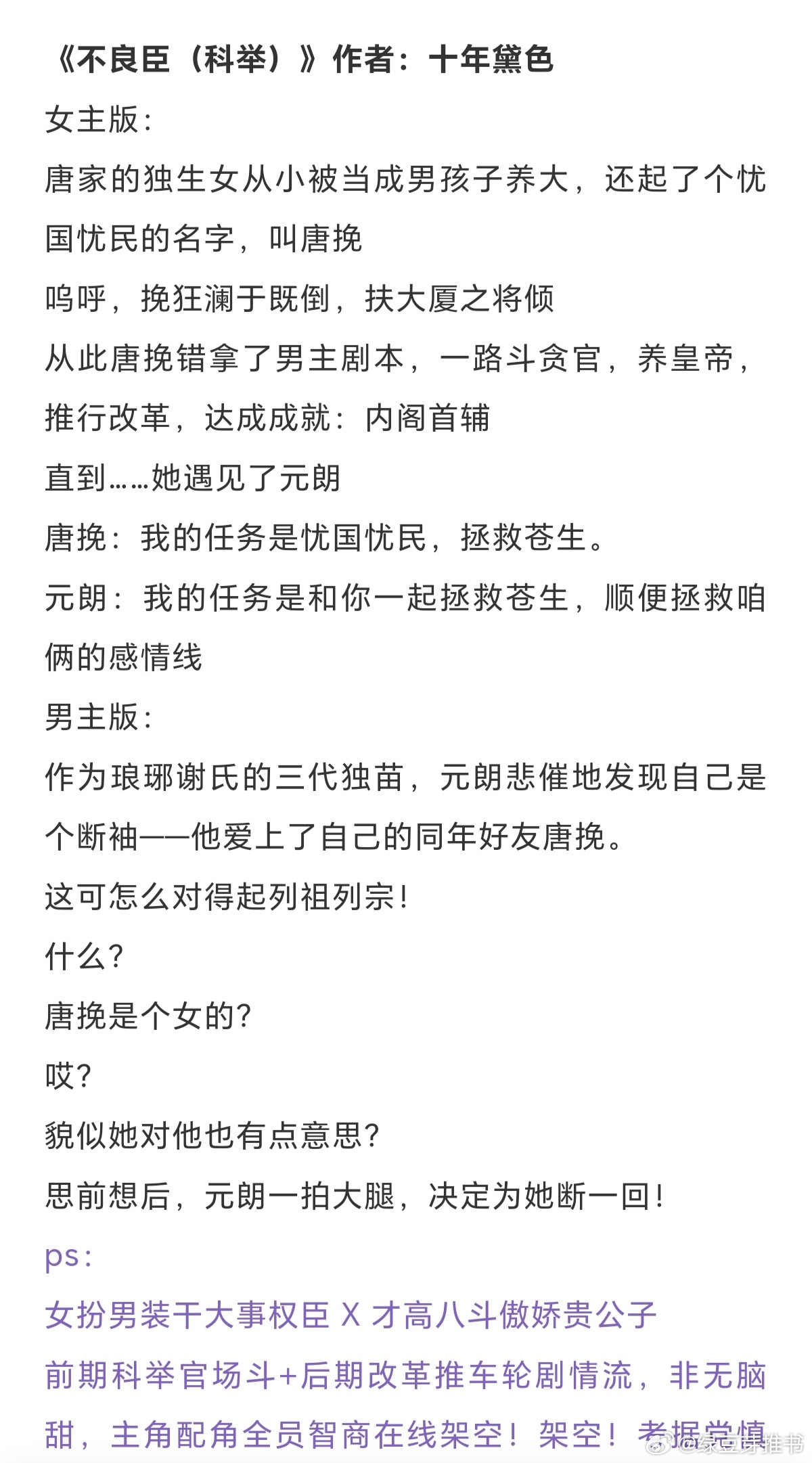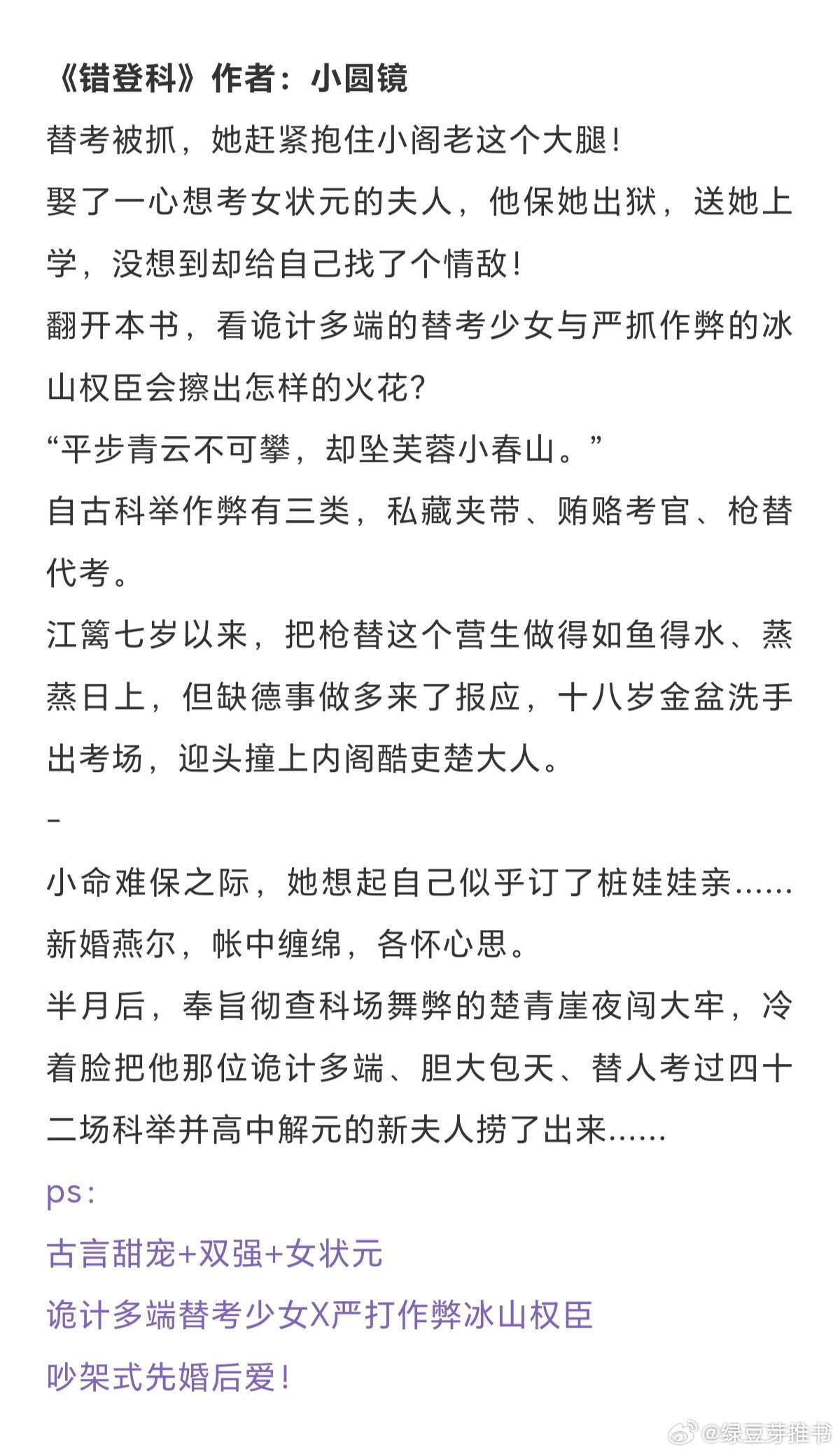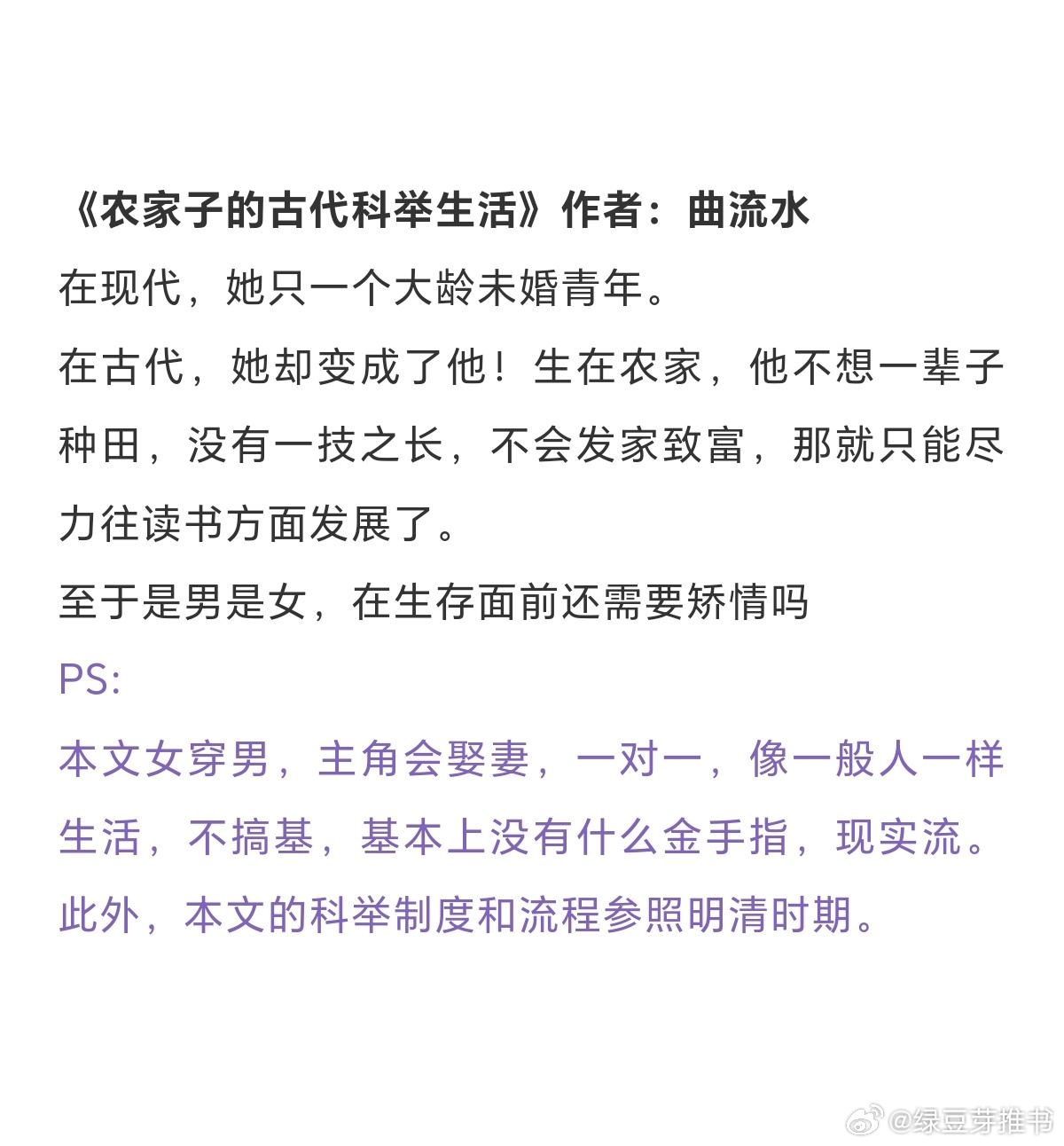 《旺夫命》作者:南岛樱桃《病美人和杀猪刀》作者:雾矢翊《农家子的古代科举生活》作者:曲流水《第一科举辅导师》作者:退戈《穿越之细水长流》作者:卉苗菁彩《不良臣(科举)》作者:十年黛色《错登科》作者:小圆镜《寒门贵女》作者:戴山青《大明第一首辅》作者:黑糖茉莉《科举逆袭:最强女首辅》 作者:宝妆成言情小说推荐古言