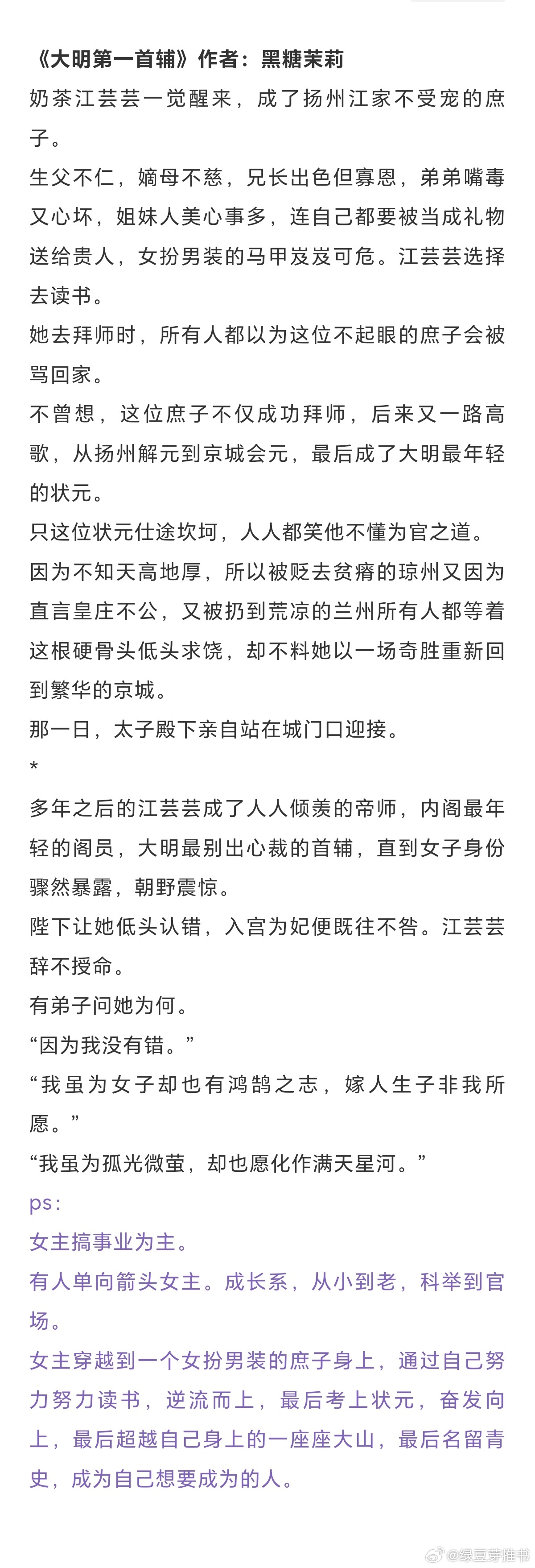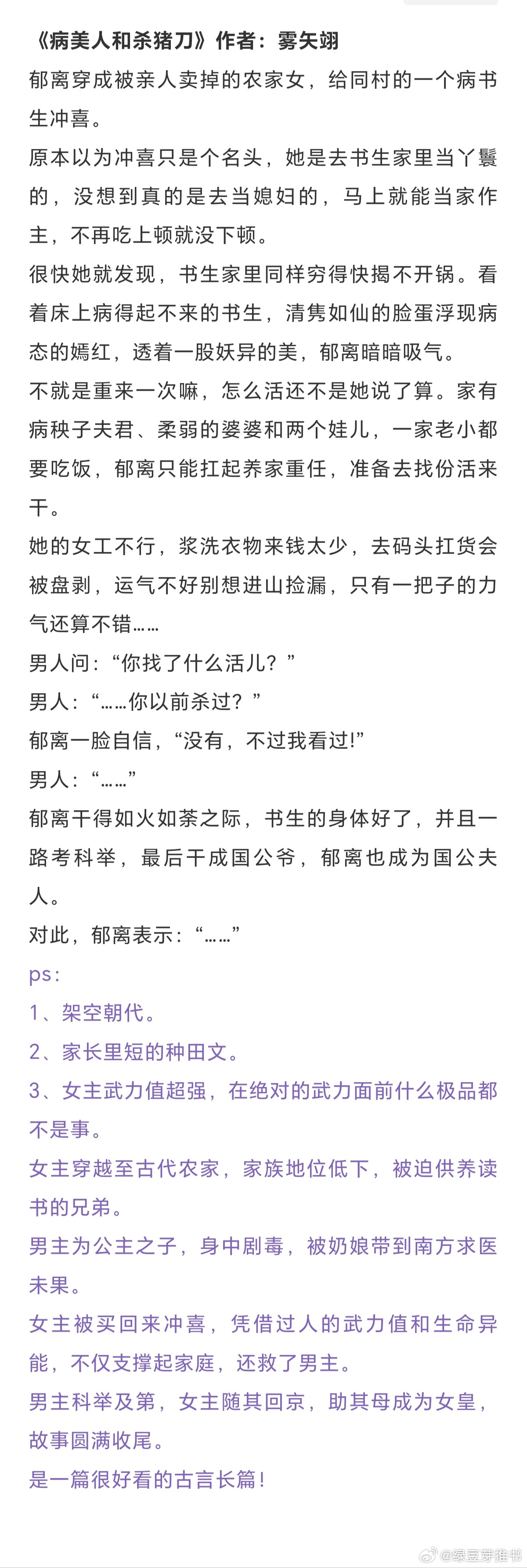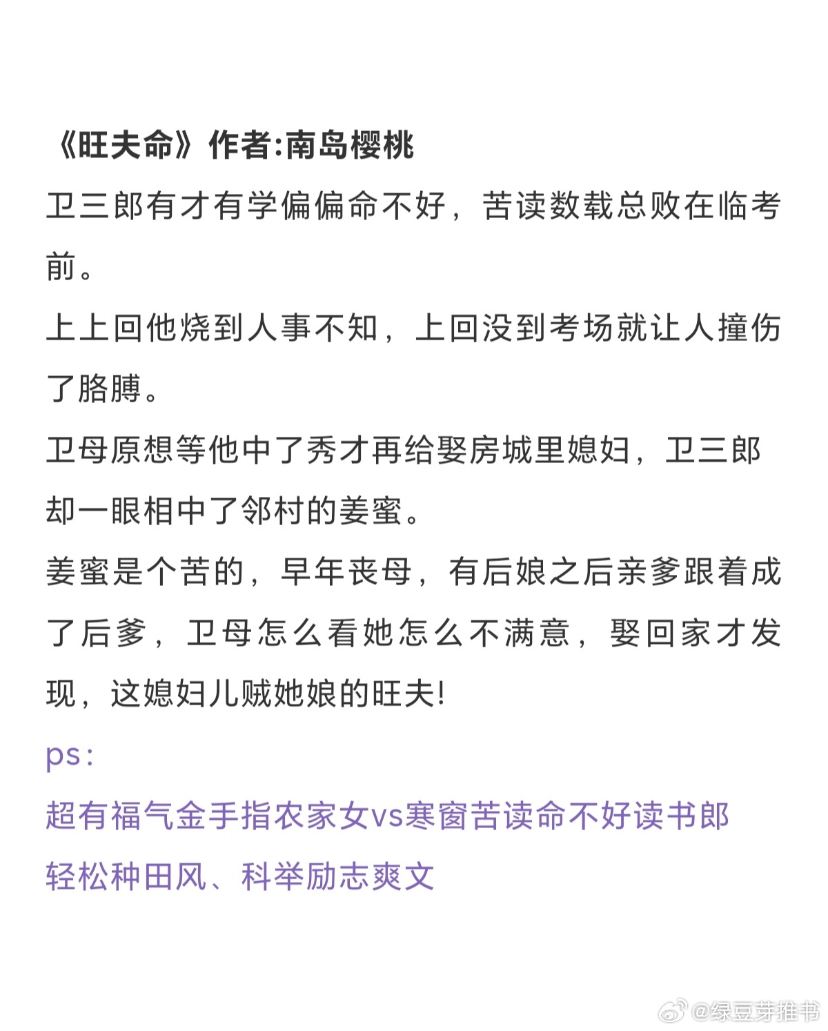 《旺夫命》作者:南岛樱桃《病美人和杀猪刀》作者:雾矢翊《农家子的古代科举生活》作者:曲流水《第一科举辅导师》作者:退戈《穿越之细水长流》作者:卉苗菁彩《不良臣(科举)》作者:十年黛色《错登科》作者:小圆镜《寒门贵女》作者:戴山青《大明第一首辅》作者:黑糖茉莉《科举逆袭:最强女首辅》 作者:宝妆成言情小说推荐古言