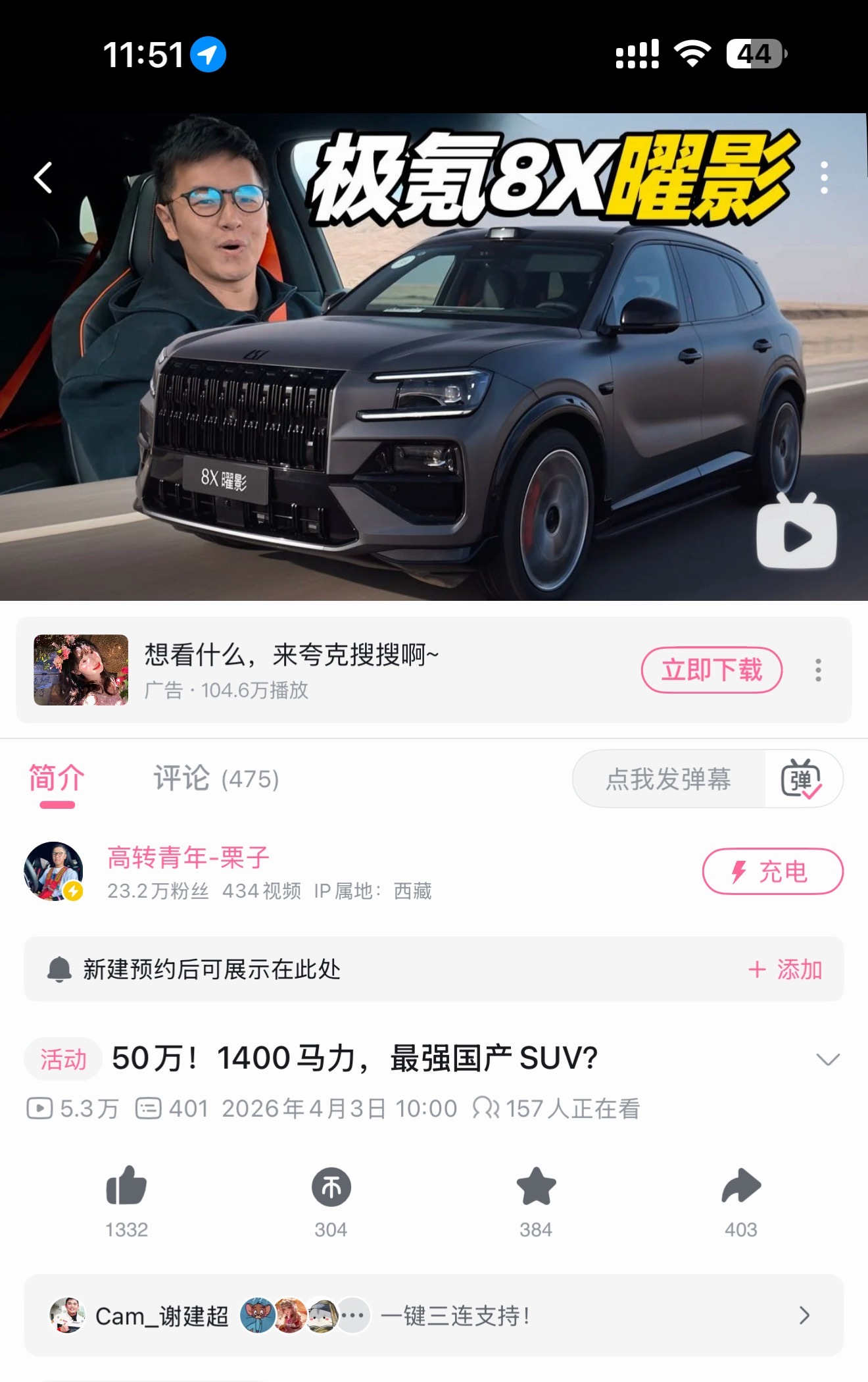 极氪8X曜影、奥迪A6L、纯电保时捷卡宴等车的试驾节目,感兴趣的朋友,可以去B站(高转青年-栗子)、小红书(高转青年-栗子)、视频号(高转青年)看,也许以后都会这种形式通知大家