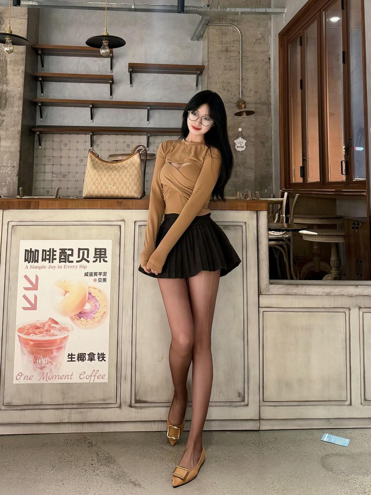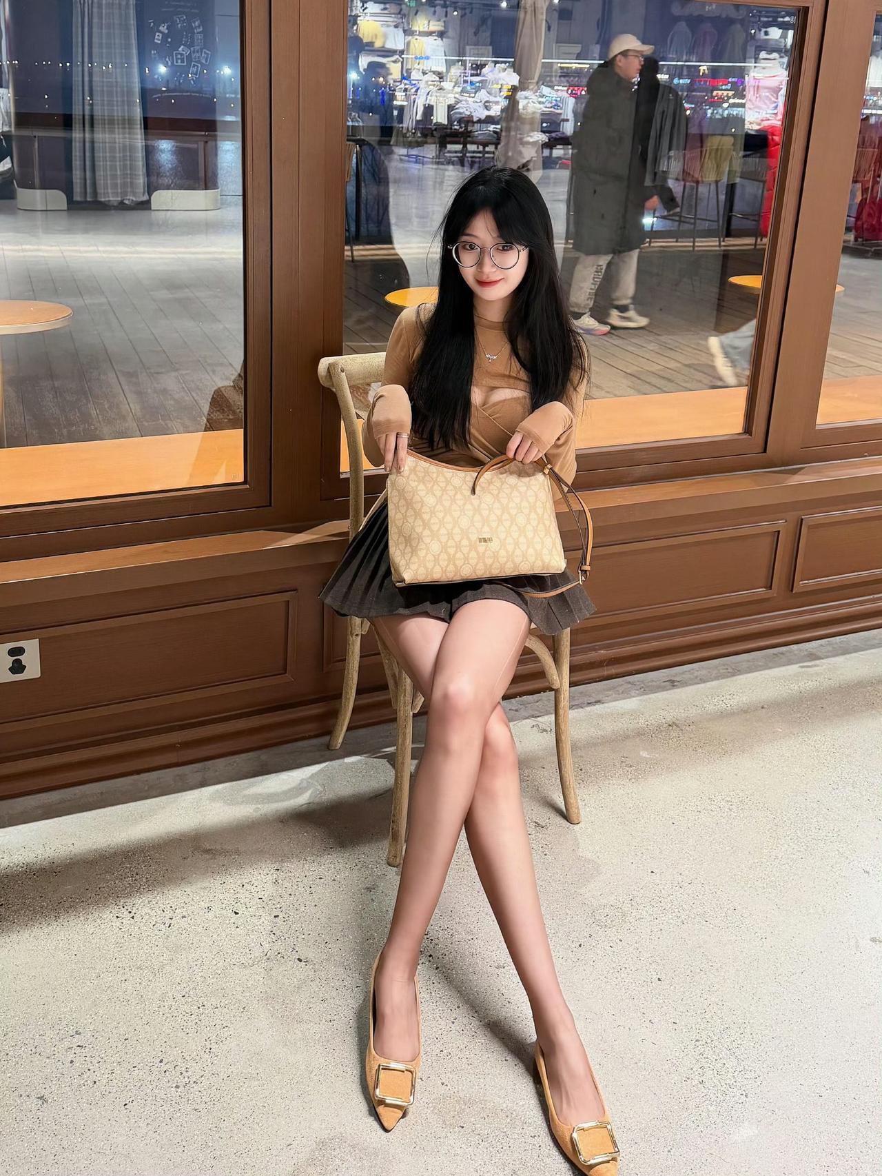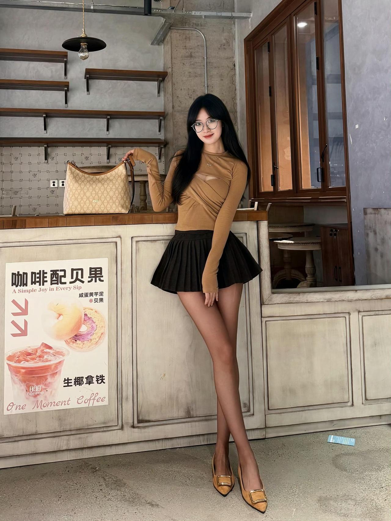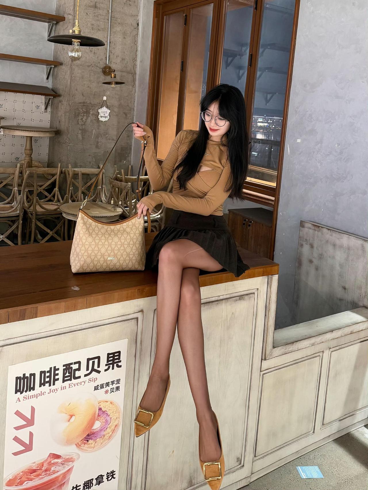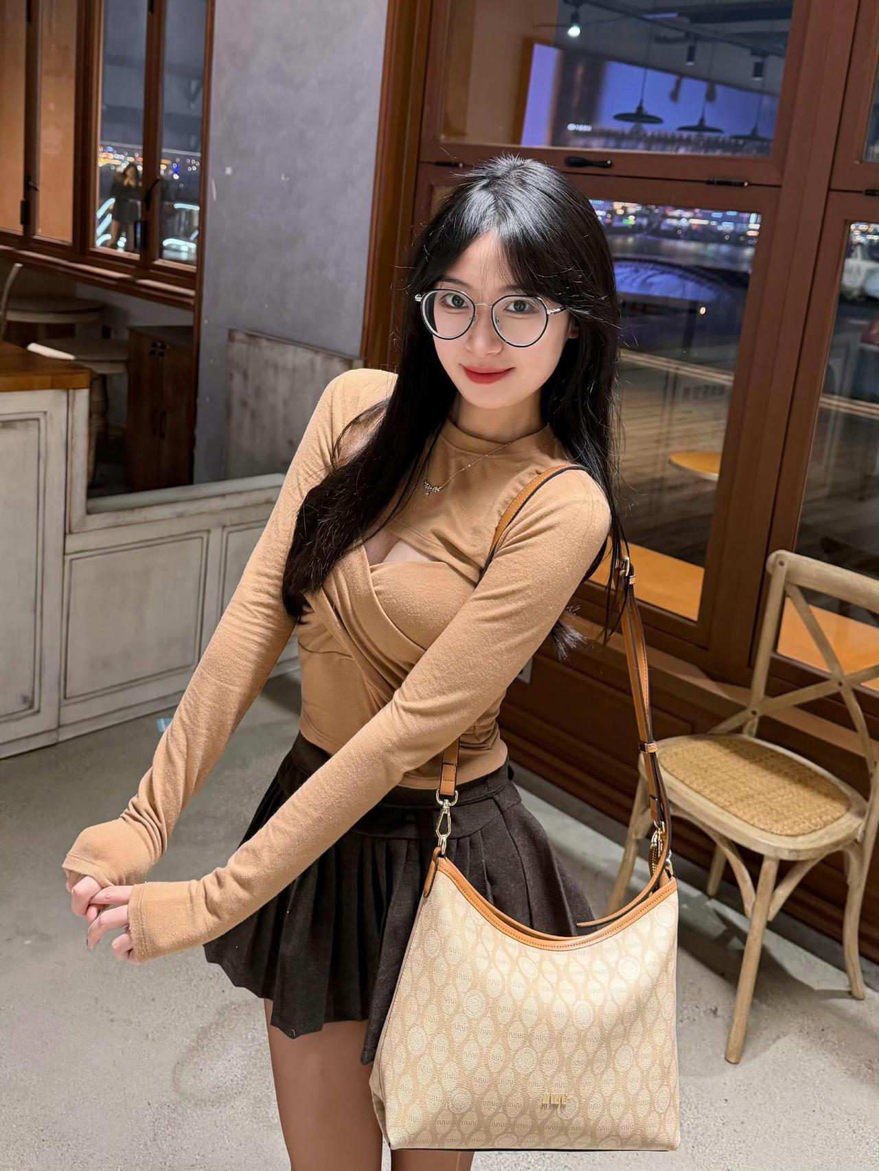 这是一套很有“轻熟氛围感”的穿搭,配色和单品都很协调: 上衣是卡其色交叉设计的长袖针织衫,修身款+小心机剪裁,既显身材又有细节感; 下装搭了黑色百褶短裙,短款+百褶元素中和了上衣的成熟感,增加了甜酷感; 配饰用了同色系的浅棕高跟鞋+老花托特包,统一的色调让整体更精致。浅卡其色系穿搭 黑色百褶裙