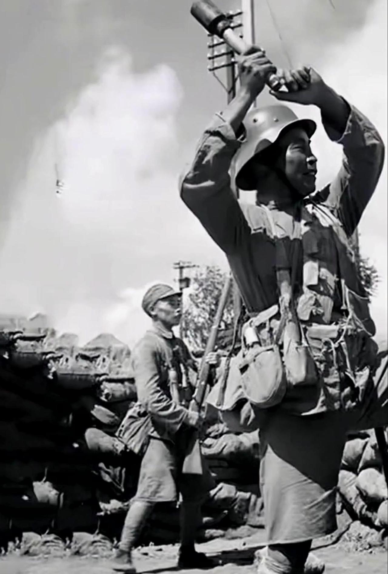 这张照片是1937年淞沪会战期间,一名中国士兵在阵地上投掷手榴弹的经典瞬间,由美国战地记者里昂拍摄,是记录中国军队浴血抗战的珍贵影像。 照片细节解读 士兵身份与装备:照片中的士兵头戴德式M35钢盔,身着当时中国军队的制式军装,身上挂满弹药袋和水壶,是国民革命军“德械师”(当时中国的精锐部队)的典型形象。他正奋力将一枚木柄手榴弹投向日军阵地,动作充满力量感,展现出无畏的战斗姿态。 战场环境:背景中的沙袋工事、战壕,以及远处的硝烟,还原了淞沪会战中巷战与阵地战的残酷场景。淞沪会战是抗日战争中规模最大、战斗最惨烈的战役之一,中国军队以劣势装备顽强抵抗日军的进攻。 历史背景与意义 淞沪会战(1937年8月13日-11月12日)是中日双方在抗日战争中的第一场大型会战,也是整个中日战争中进行的规模最大、战斗最惨烈的一场战役。这张照片定格了普通士兵在战场上的英勇一刻,成为中国人民不屈不挠抗击外来侵略的象征,让后人得以窥见当年战士们保家卫国的决心与牺牲精神。