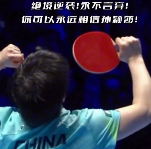 但是,逆境中顺风,绝境中逢生,每一次看似柳暗花明的局势转折都是背后日复一日的刻苦训练,汗水从不会白白滴落,终将汇成辽阔海湾,汹涌澎湃,激流勇进!孙颖莎加油!国乒加油!国乒精神加油!