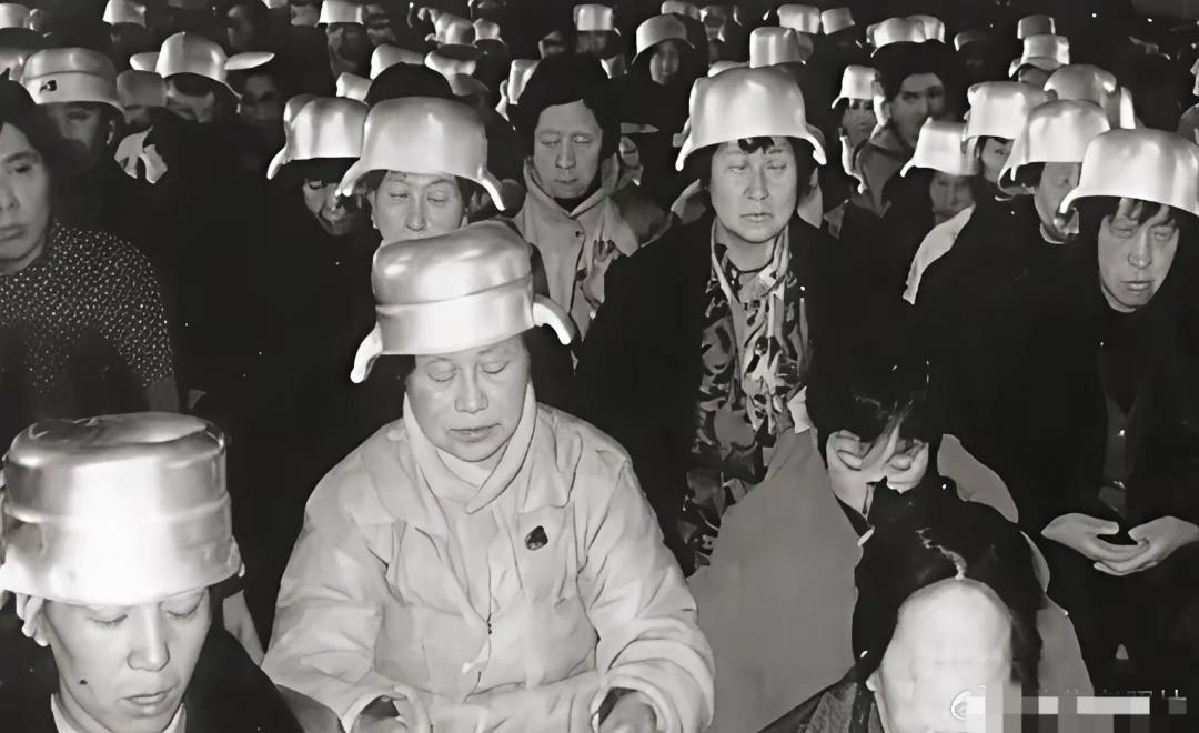 1993年,妙峰山举办“高级气功培训班”。 人们头戴铝锅(被称为 “信息锅”)静坐修行。[允悲] 气功教程 气功思维 炼气功
