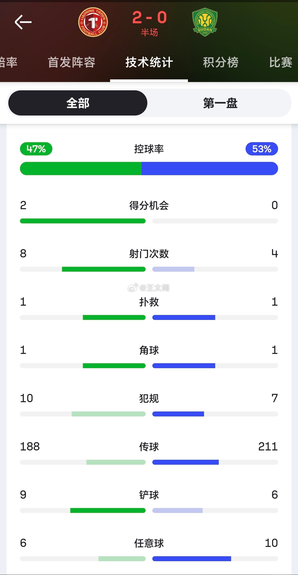 虽然边路能下底,但最后一传受制于菜地,双前锋基本得不到太多支持,半场只有4次射门,比对手少了一半