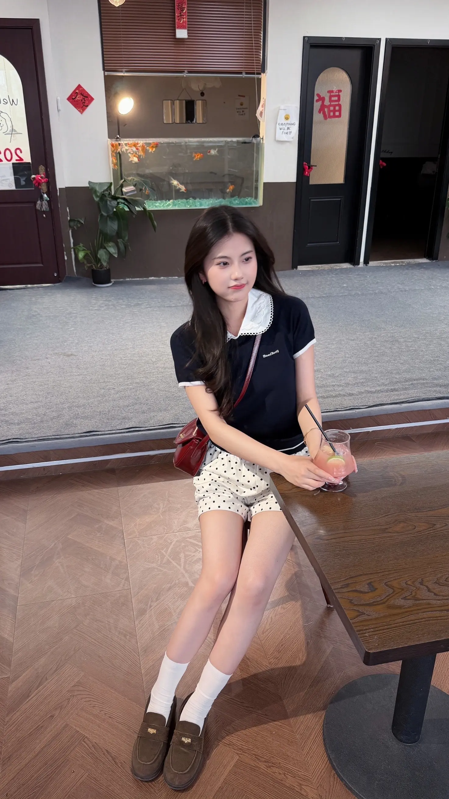 伊能静的儿子恩利再次穿起裙装,蓝色连衣裙搭配蓝色波点皮鞋,整体造型透着一股清新感