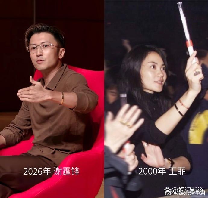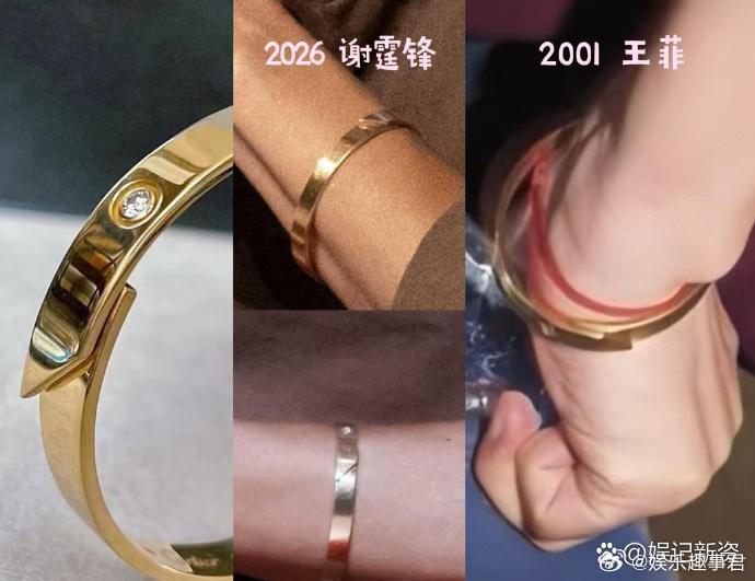 谢霆锋戴与王菲26年前定情手镯谢霆锋被网友扒出佩戴与王菲26年前的定情手镯,可见镯子的光泽如新,应该保存得很好。