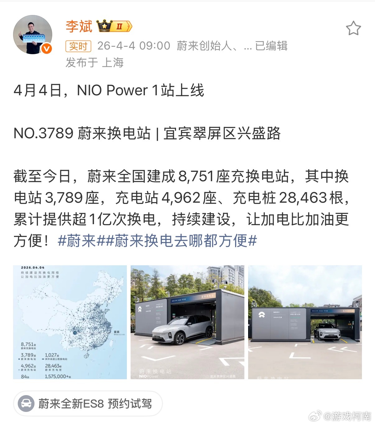 李斌称蔚来换电站已建成8751座蔚来全国建成8751座充换电站 蔚来这基建速度,真没谁了。3788座换电站,加上近5000座充电站,高速换电已连成一张网。而且蔚来充电桩80%以上都是非蔚来用户在薅,这种“养着自己的用户,同时给别人加油”的玩法,别人学不来。比亚迪要年底建2万座闪充站,规划很猛,但蔚来这8751座可是实打实砸出来的。补能赛道,还早着呢。
