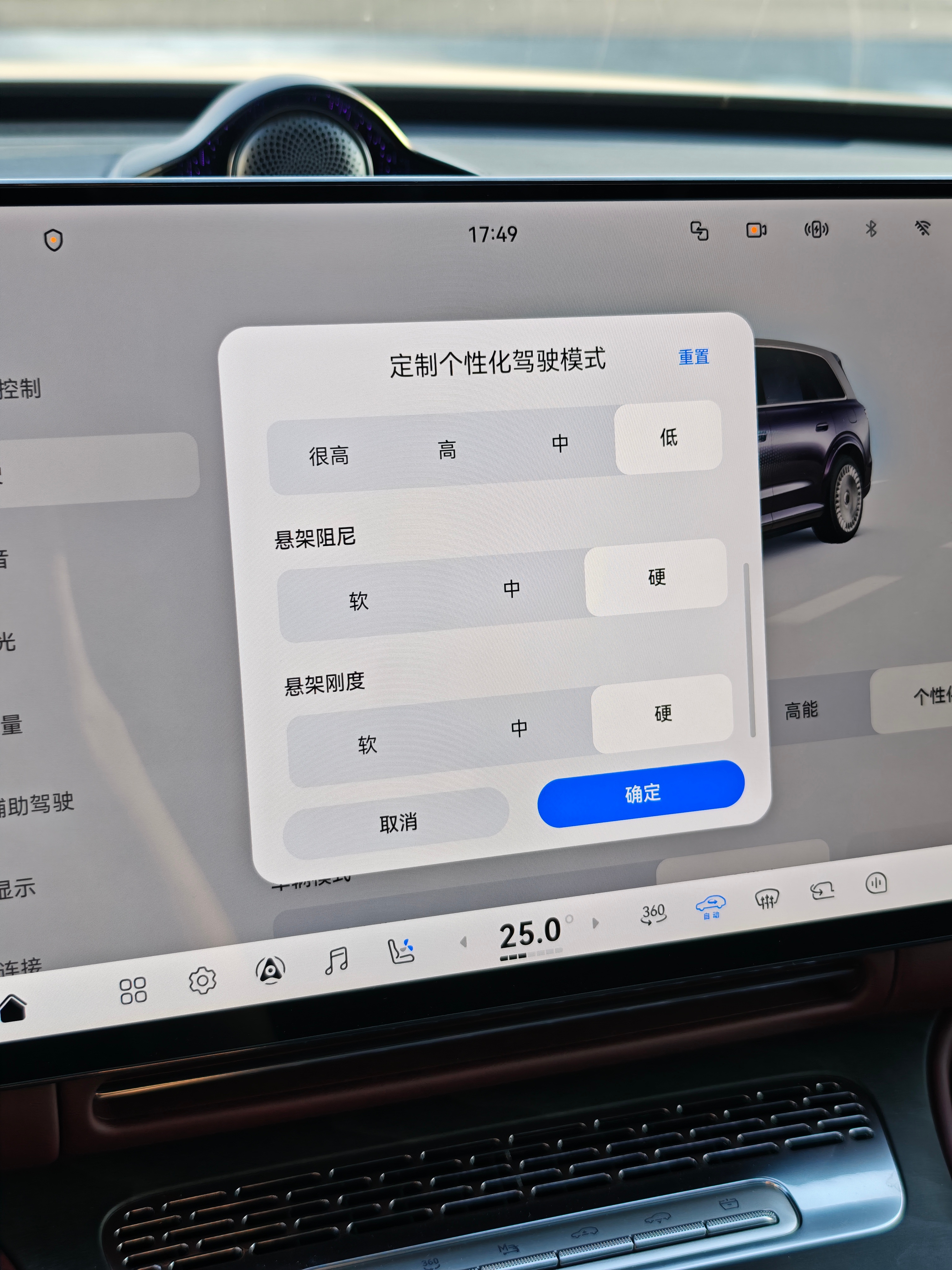 悬架的高度、阻尼和刚度有多种档位可调,因此可以展现出差异极大的性格特点,三腔空悬立大功。