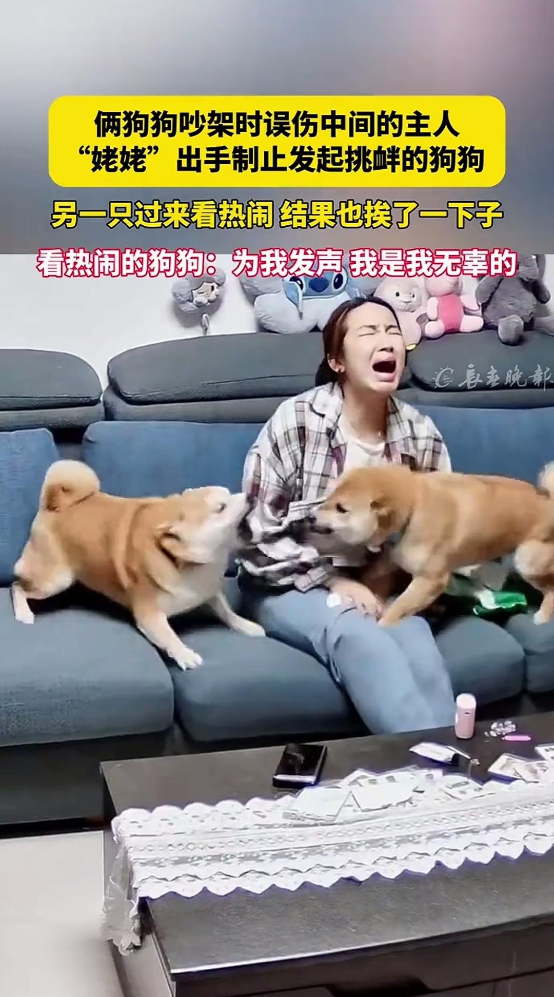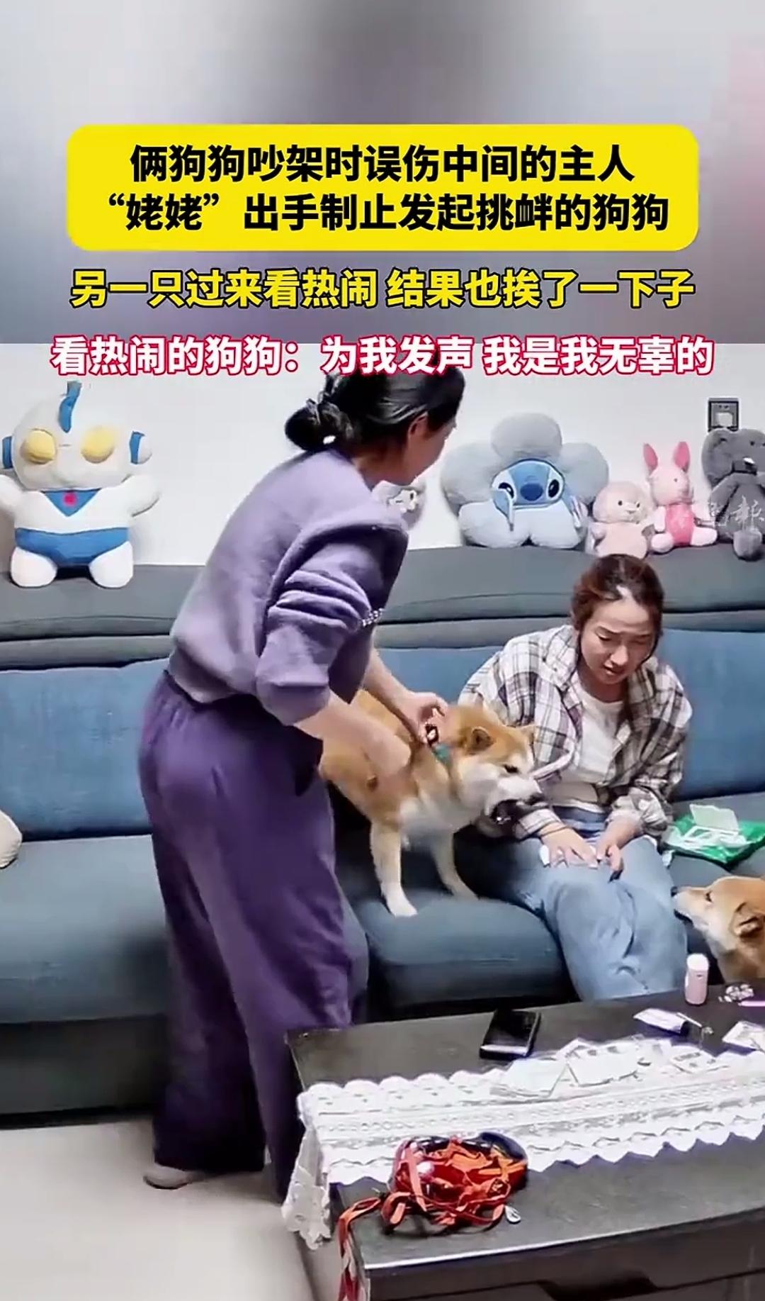 两狗吵架,女子无辜遭殃。其中一只狗吵不过,直接朝着站在中间的女子腿部咬了一口。旁边女子的老妈见状急了,对着咬人的狗一阵拍打。我不禁想问,这样的狗还能留吗?