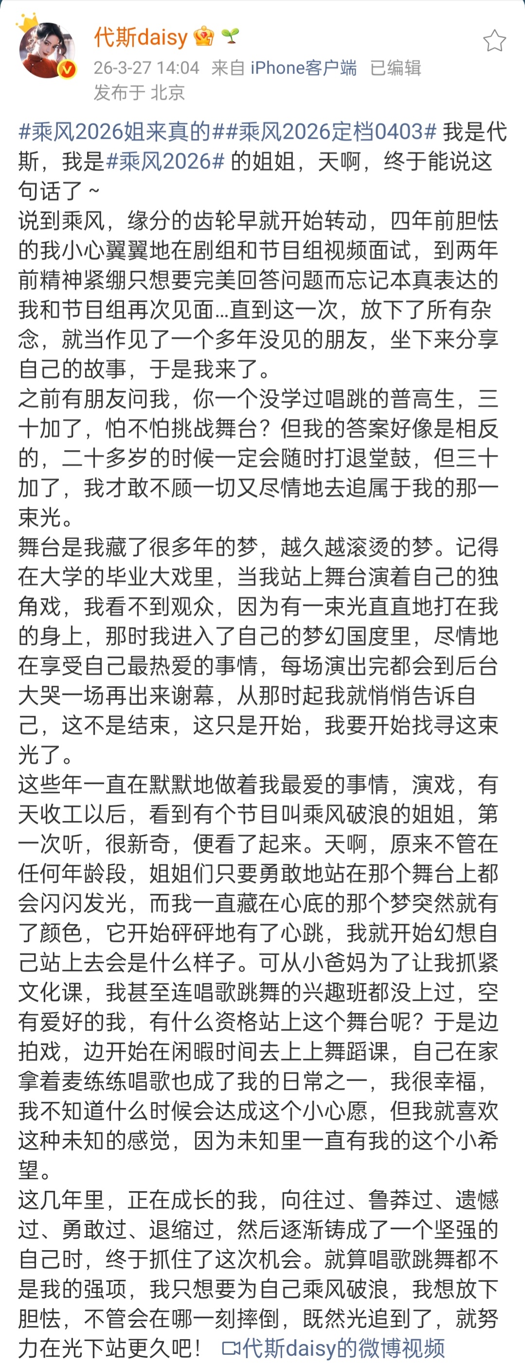 代斯四年前在剧组参加浪姐视频面试