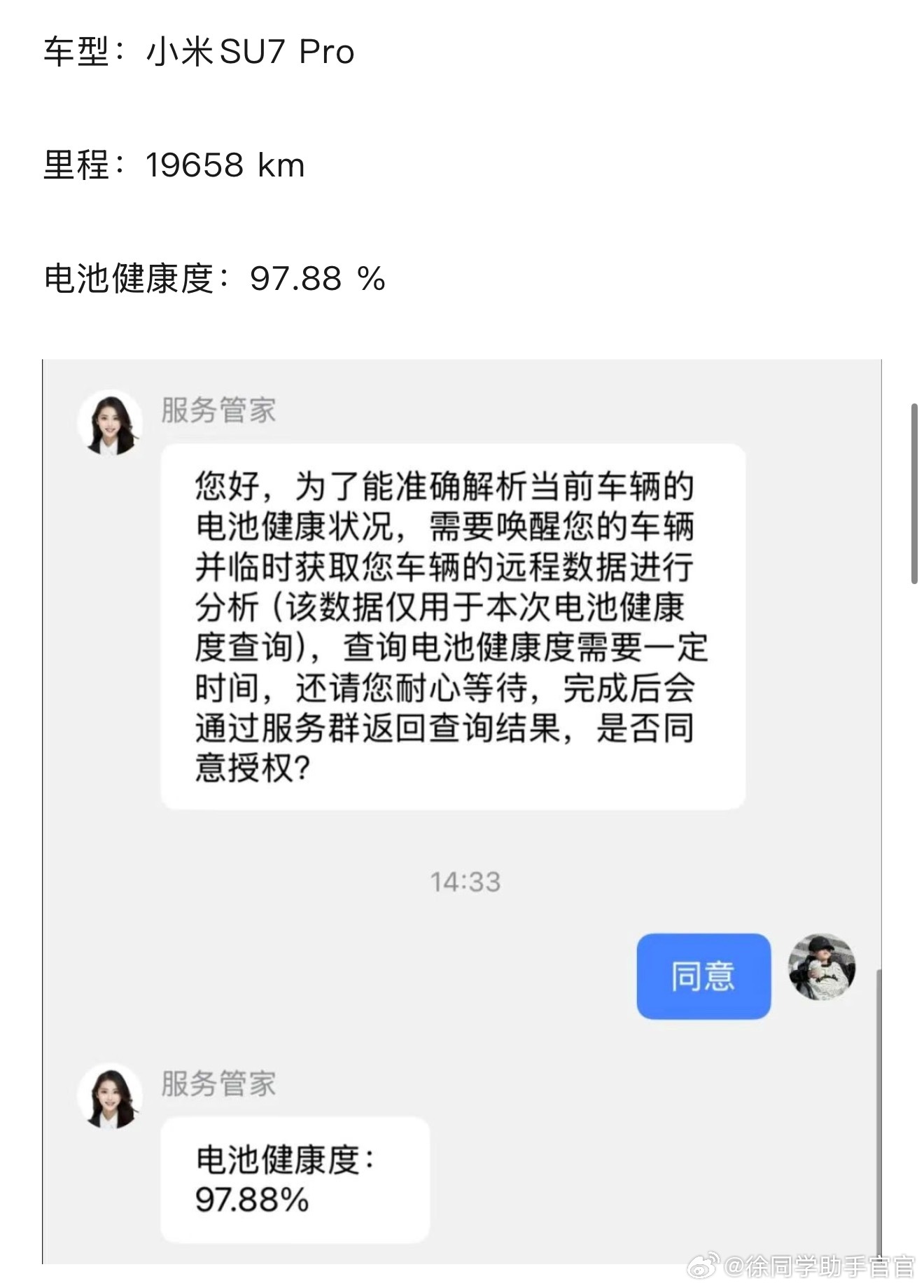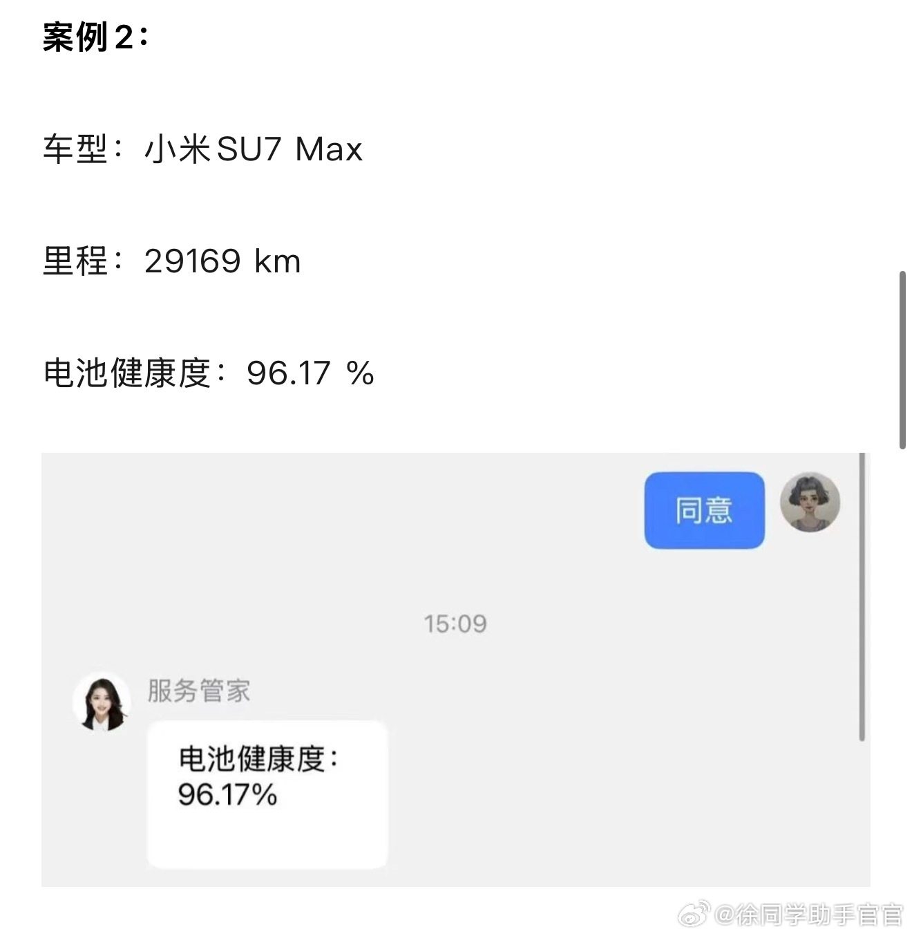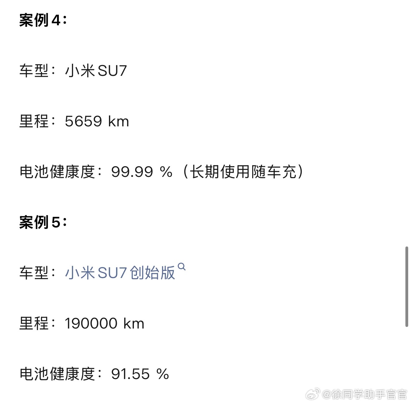 图片是我们收集到的多位小米汽车车主的真实反馈,大家可以参考不同里程,不同使用场景下的电池健康状态,欢迎分享~