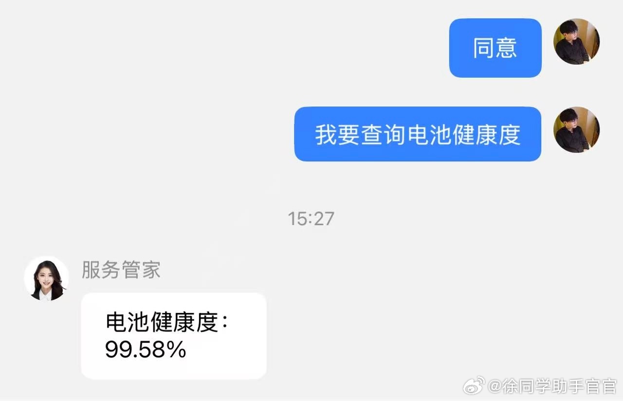 5️⃣以上步骤都完成之后,服务管家便会将查询到的电池健康度发送到聊天框内。