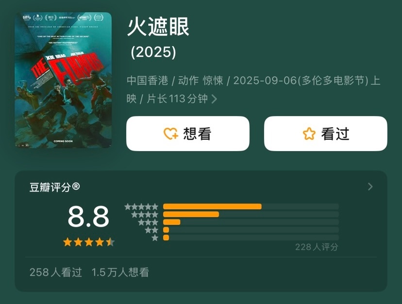 卧槽,谢苗主演动作片《火遮眼》豆瓣开分8.8!