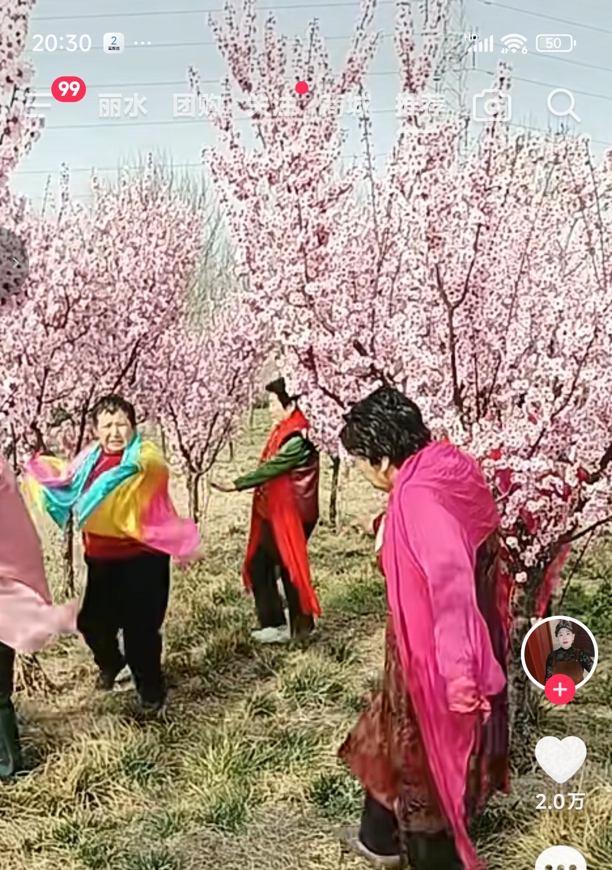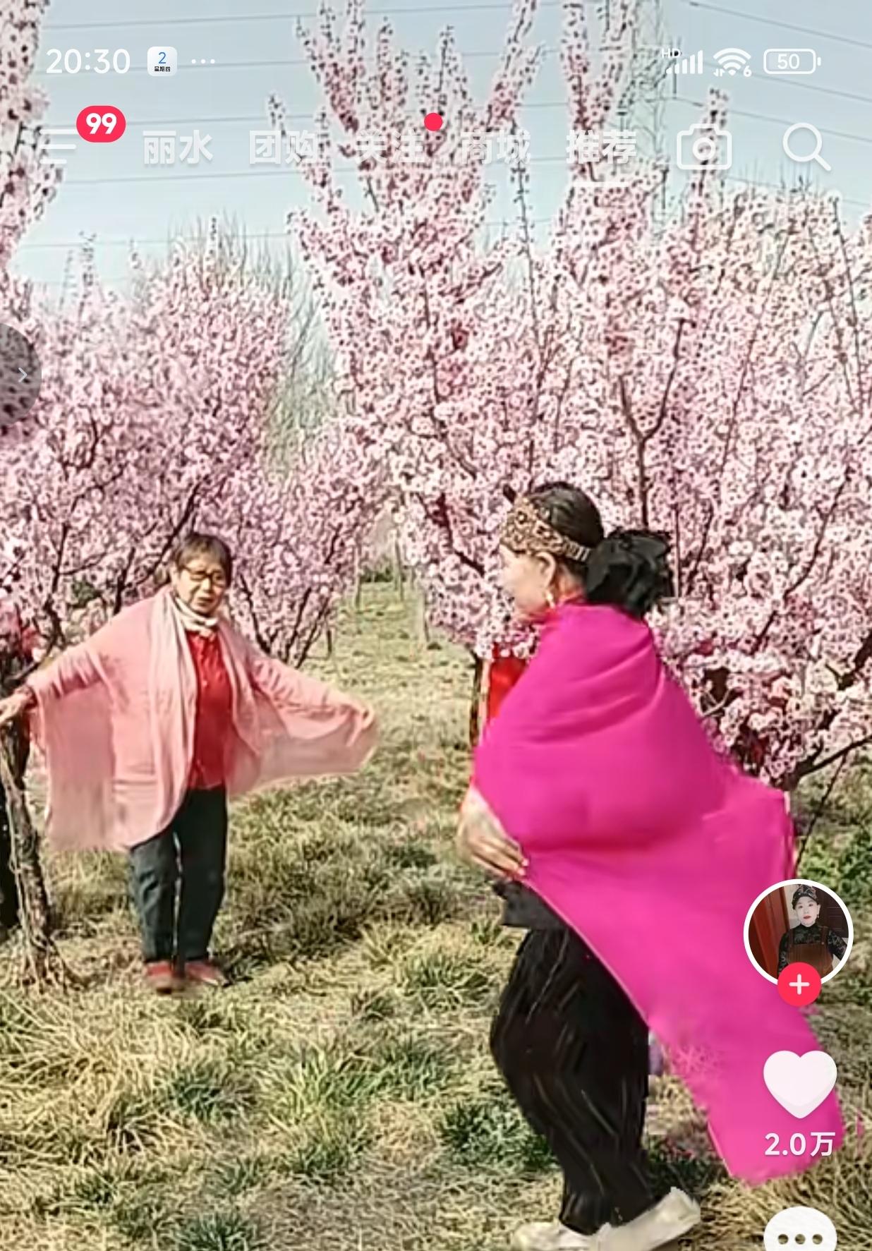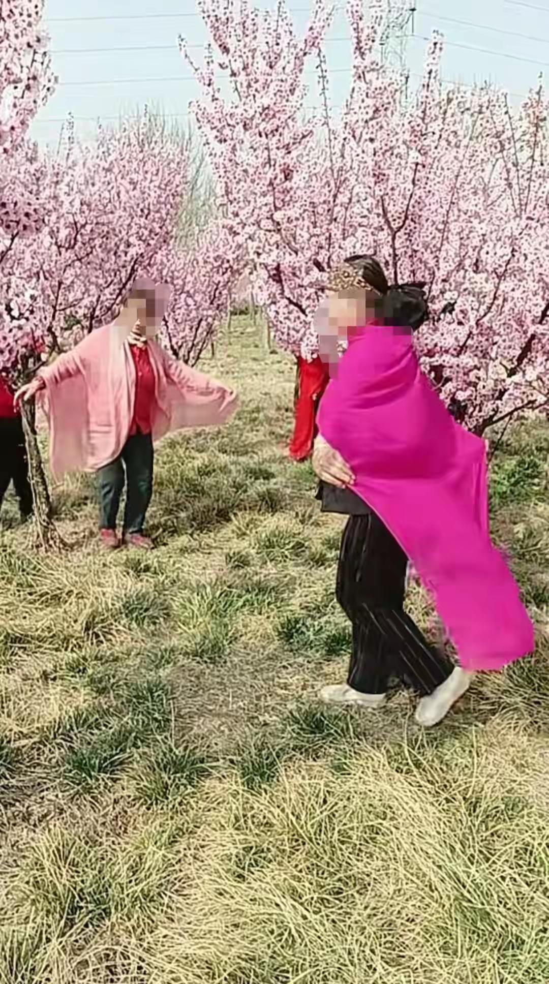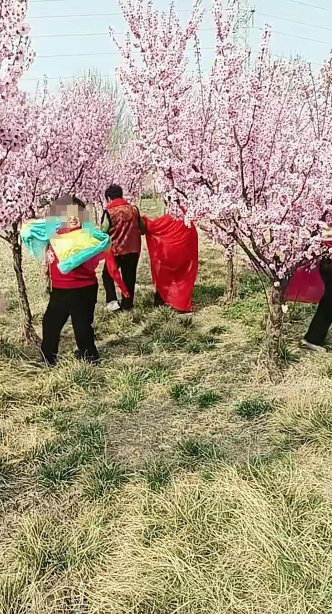 哈哈!原谅我不厚道的笑了 春天到了,花儿开了,青草也发芽了,大妈们的春心也跟着萌动起来。 瞧!就连一群走路都颤颤巍巍的老太太也出来“撒欢”了。 只见她们身披鲜艳夺目的披风,脚步不稳地绕着桃树打转转。 那场景,好似回到了童年玩老鹰捉小鸡的时光,她们玩得兴高采烈,旁人看得也满心欢喜。 挺好的!
