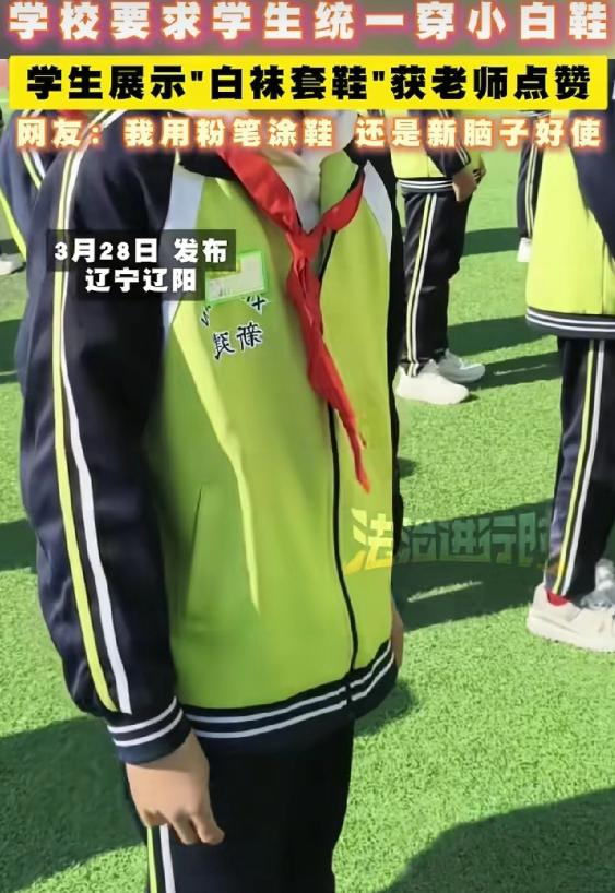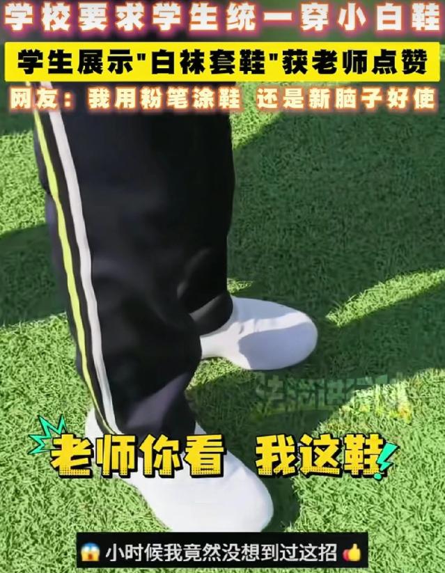 “太聪明了!”辽宁辽阳,学校要求统一穿小白鞋,一名学生没有,没想到,他用白袜套在鞋子上,也成了小白鞋,被老师夸赞,网友: 我用粉笔涂鞋,还是新脑子好使。 辽宁辽阳一所学校的紧急通知打破了许多家庭的宁静,学校宣布,次日所有学生必须统一穿着小白鞋参加集体活动,一时间,辽阳本地的家长群炸开了锅,各种讨论此起彼伏。 一些家长连夜翻箱倒柜寻找家中现有的白鞋,另一些心急的家长干脆直奔超市和商店抢购,还有些家长则讨论着如何跟老师通融一下。 而就在这样一片混乱之中,一名学生却表现得格外淡定,他似乎早就胸有成竹,想到了一个不用花钱、不用跑腿、不用求人的完美解决方案。 更令人意外的是,第二天这名学生的"小白鞋"不仅成功通过了检查,还让老师忍不住连连夸赞,事后有网友感叹:"我用粉笔涂鞋算什么,还是新脑子好使。" 这一事件在网络上迅速传播,引发了无数网友的热议,据当地媒体报道,事情发生在辽宁辽阳市的一所学校,统一着装的命令下达得非常突然,要求所有学生必须穿着小白鞋。 对于这位学生来说,这是一个不小的难题,家里一时找不到符合要求的小白鞋,眼看第二天就要面临被批评的窘境,他却在关键时刻灵光一闪。 这名学生没有向父母施压要求连夜购买新鞋,也没有选择逃避或找借口,他冷静地翻出了家里最普通的白色袜子,然后将白袜直接套在自己原本的鞋子外面,一双原本不符合要求的小白鞋就这样诞生了。 尽管这双鞋的材质和形状看起来有些特别,但远远看去确实呈现出白色鞋子的视觉效果,整个过程简单得令人咋舌,成本更是低到可以忽略不计,仅仅用了一双白袜就把原本棘手的问题轻松解决。 第二天,这名学生就这样穿着"改良版小白鞋"走进了校园,他的与众不同很快引起了周围同学的注意,大家纷纷围过来观摩这一创意,场面一度相当热闹,而老师也很快注意到了这双特殊的鞋子,但在了解情况后并没有生气。 老师反而被这名学生的应变能力和创意所折服,当众对他进行了表扬,认为他展现了出色的生活智慧。 消息传到网上后,网友们纷纷表达了自己的看法,一位网友回忆道:"想起我当年遇到这种情况,都是拿粉笔把鞋子涂白,结果走两步就掉粉,尴尬得要命,跟这孩子一比,我当年简直是白活了。" 这一事件也引发了不少人对于统一着装规定的思考,有人认为,规定本身无可厚非,但这名学生的应对方式确实展现了灵活变通的能力。 毕竟生活中有太多突发情况,如何在不违反原则的前提下找到最简便的解决方案,本身就是一门学问,还有网友调侃道:"这孩子以后肯定是个干大事的料,遇到问题不慌不忙,随手就能找到最优解。"
