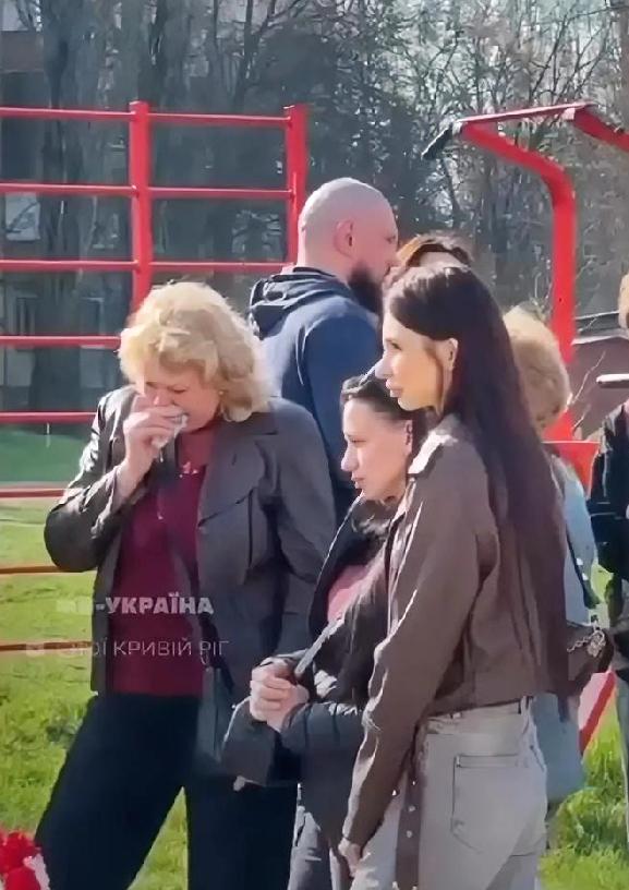 克里维里赫纪念2025年4月4日俄罗斯导弹袭击的遇难者。 表剧发生的操场上摆放着鲜花、玩具和画像。一片寂静,令人想起失去亲人的痛苦。