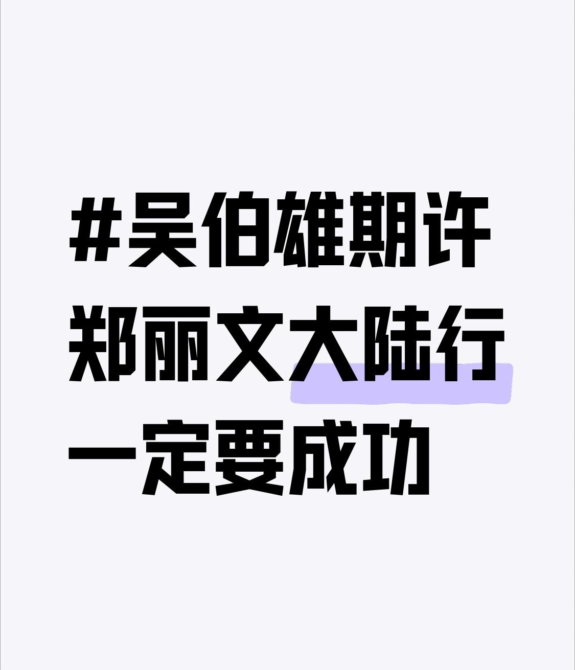 吴伯雄期许郑丽文大陆行一定要成功 吴伯雄期许郑丽文大陆行一定要成功,这背后意义重大。当下两岸关系复杂,和平发展是主流民意。郑丽文此次走访多个城市,与多方深入座谈,任务艰巨。 成功的大陆行能为两岸交流注入暖流,争取和平红利。但她面临不少挑战,岛内各种声音审视着她的一举一动。她得平衡好立场与善意,不能只看岛内一时得失,要着眼两岸同胞长远福祉。希望她能不负期许,让这次行程成为连接两岸民心的桥梁,为两岸关系“破冰”“升温”。