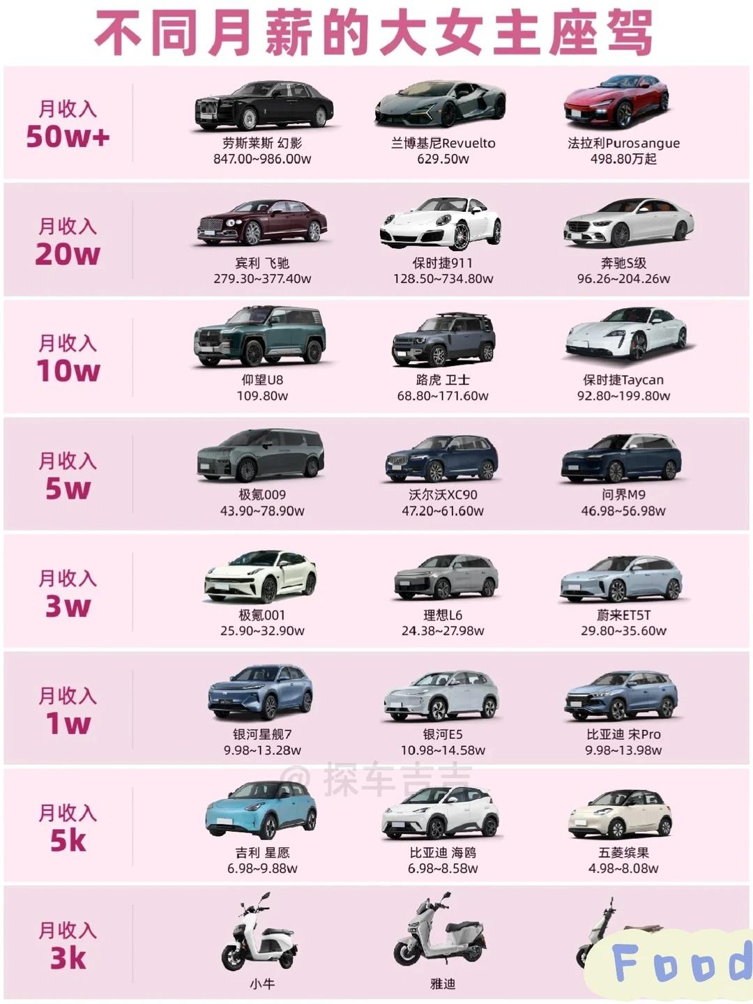 月薪不同怎么选车?女生&打工人购车指南✅ 月入1000的女生该选什么车?很多姐妹和打工人都有这样的困惑,其实购车核心就是:量力而行,适配自身收入,既要好用又不增加经济负担🚗 月薪1万元的消费者,选车时可以结合自身实际需求、日常用车场景和经济状况综合考量,不用盲目追求高端,适合自己的才是最好的。其中,月收入在8000-10000元的朋友,建议优先考虑10万元左右的高性价比车型,比如本田飞度、海鸥、海豚、哈弗H6这几款,实用性拉满,后期用车成本也亲民。 🏎️ 若月收入在10000-15000元,预算可适当提升,起亚K5、本田思域、速腾这类车型就很合适,兼顾颜值与实用性,不管是日常通勤还是周末出游,都能满足需求。 🚘 而月收入在15000-20000元的消费者,完全可以考虑B级车,像雅阁、迈腾、凯美瑞这类经典车型,质感、空间和性能都更出色,适配职场通勤或家庭出行。 另外,针对月薪1万元的消费者,重点推荐2款车型🌟:深蓝S7增程版凭借个性潮流的设计,加上200公里纯电续航,既能满足日常通勤0油费,又能兼顾长途出行,吸引力拉满;奥迪A3则凭借豪华品牌定位,搭配出色的驾驶体验,成为追求品牌质感、预算有限的消费者的优选。 💡 这里必须提醒大家:购车不只是一次性支付车款,后续的车辆保养、加油(或充电)、保险等费用也需要提前考虑。建议大家购车时切勿超出自身经济能力,优先选择性价比高、适配自己用车场景的车型,避免因买车影响日常生活质量💸【来自懂车帝车友圈】