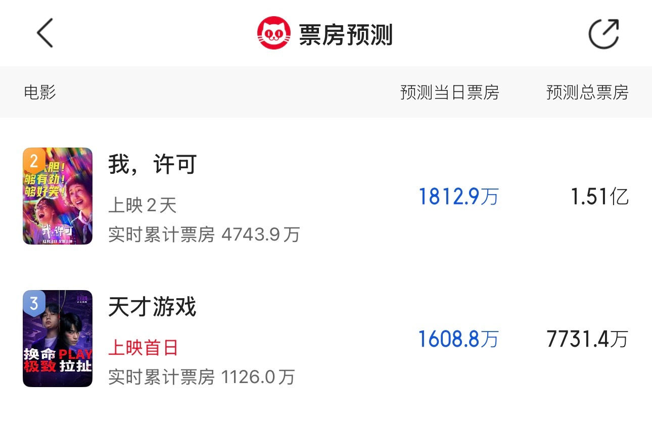 我许可能有1.5亿算是不错了天才游戏居然预测总票房只有0.77亿
