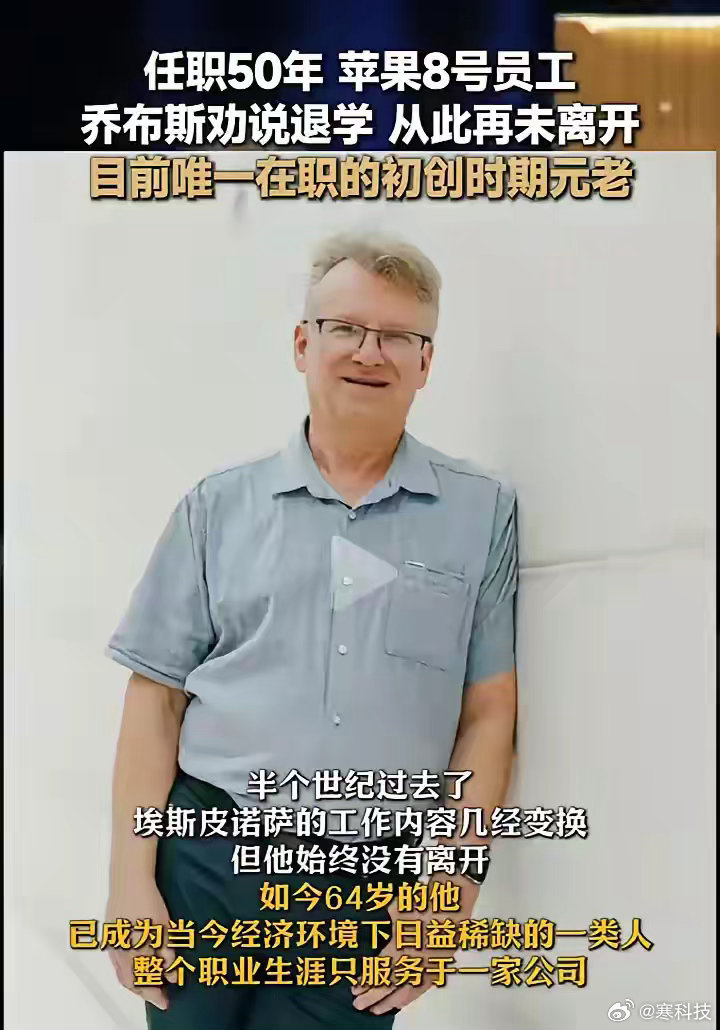 现在这种一辈子只在一家公司的人已经非常少了,还是苹果这种科技巨头,近期纽约时报采访了苹果公司第8号员工,也是目前唯一在职的初创时期元老埃斯皮萨诺。14岁的就入职了苹果公司。