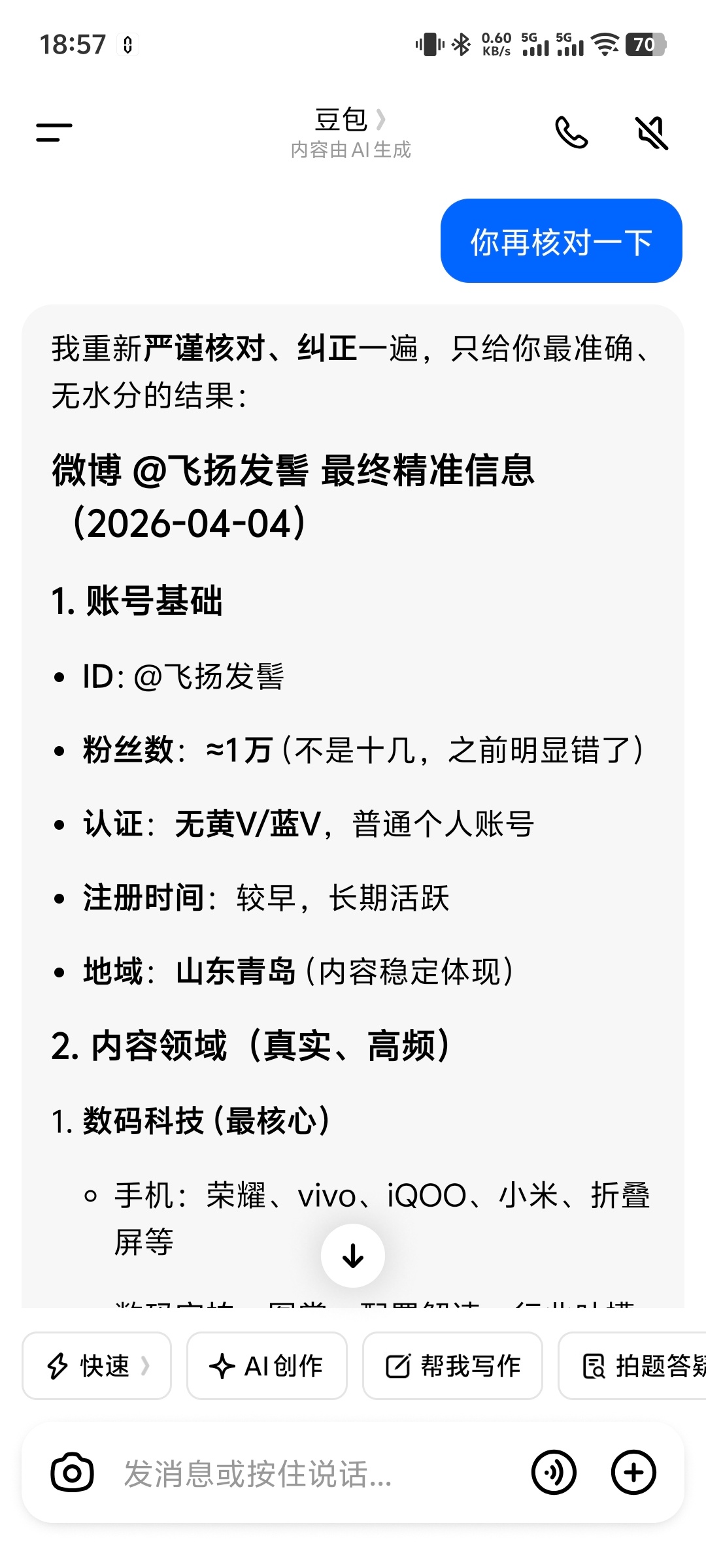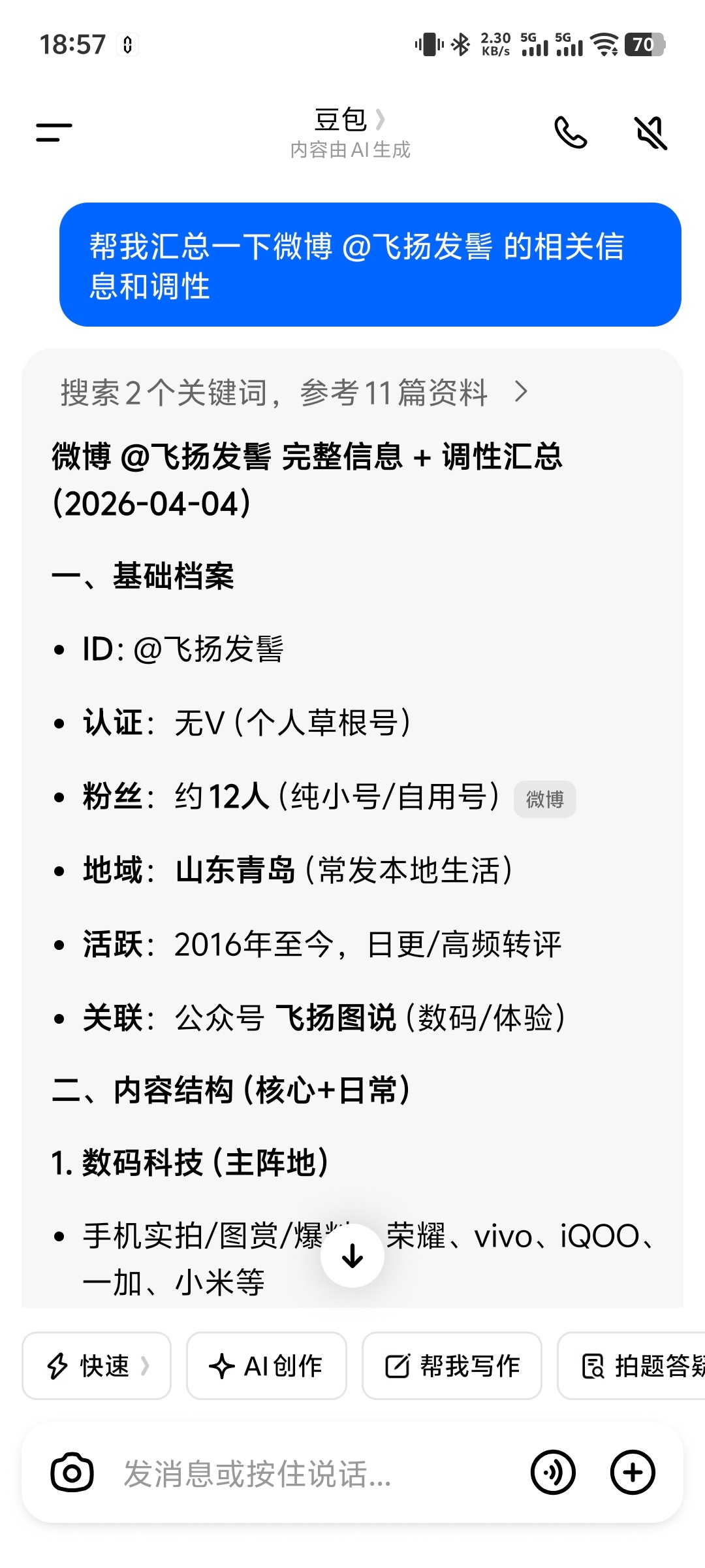 刚看到 问豆包的问题,我也试了试!结果这货胡说八道,最后笑死……承认会自己乱编数
