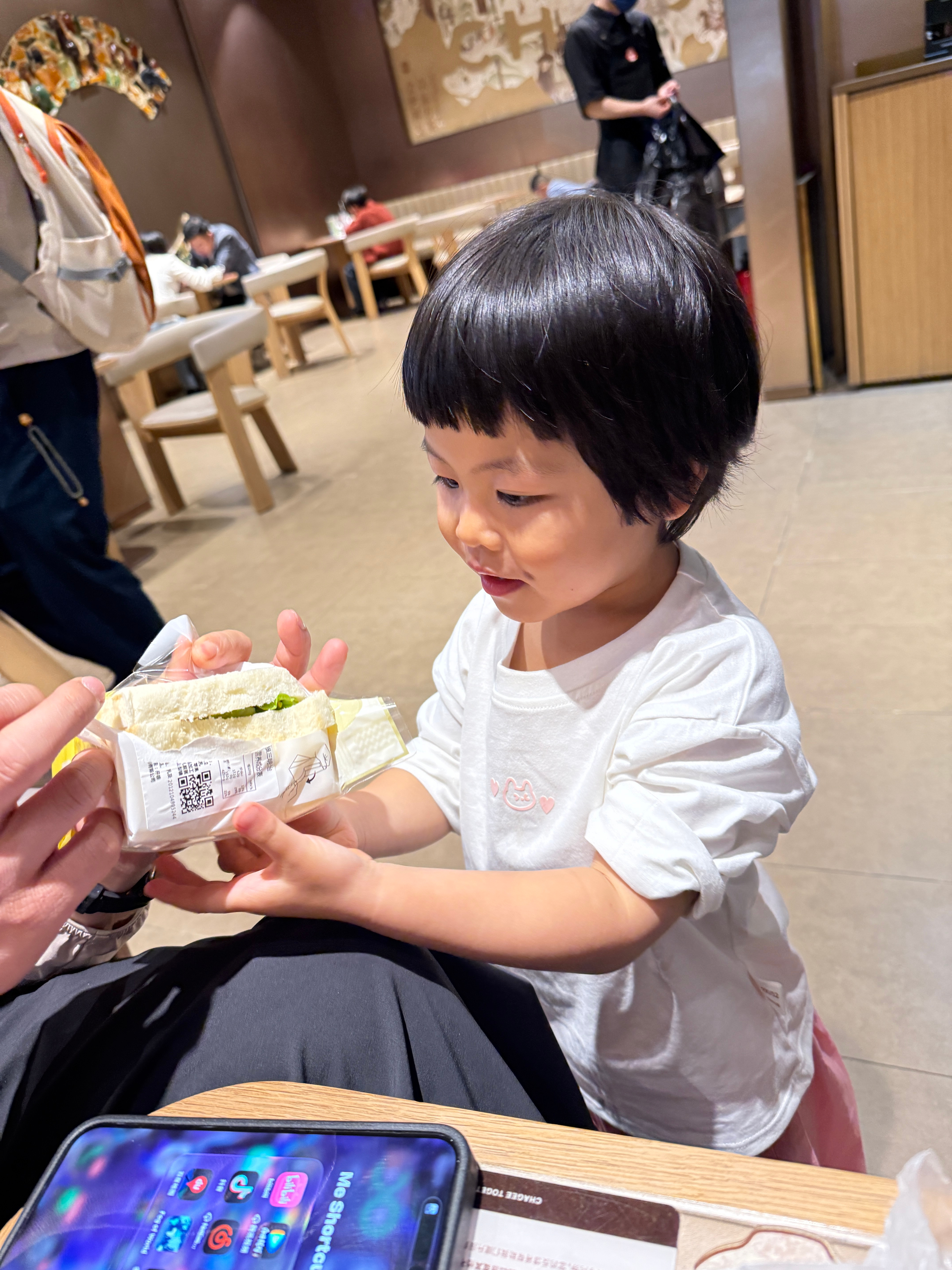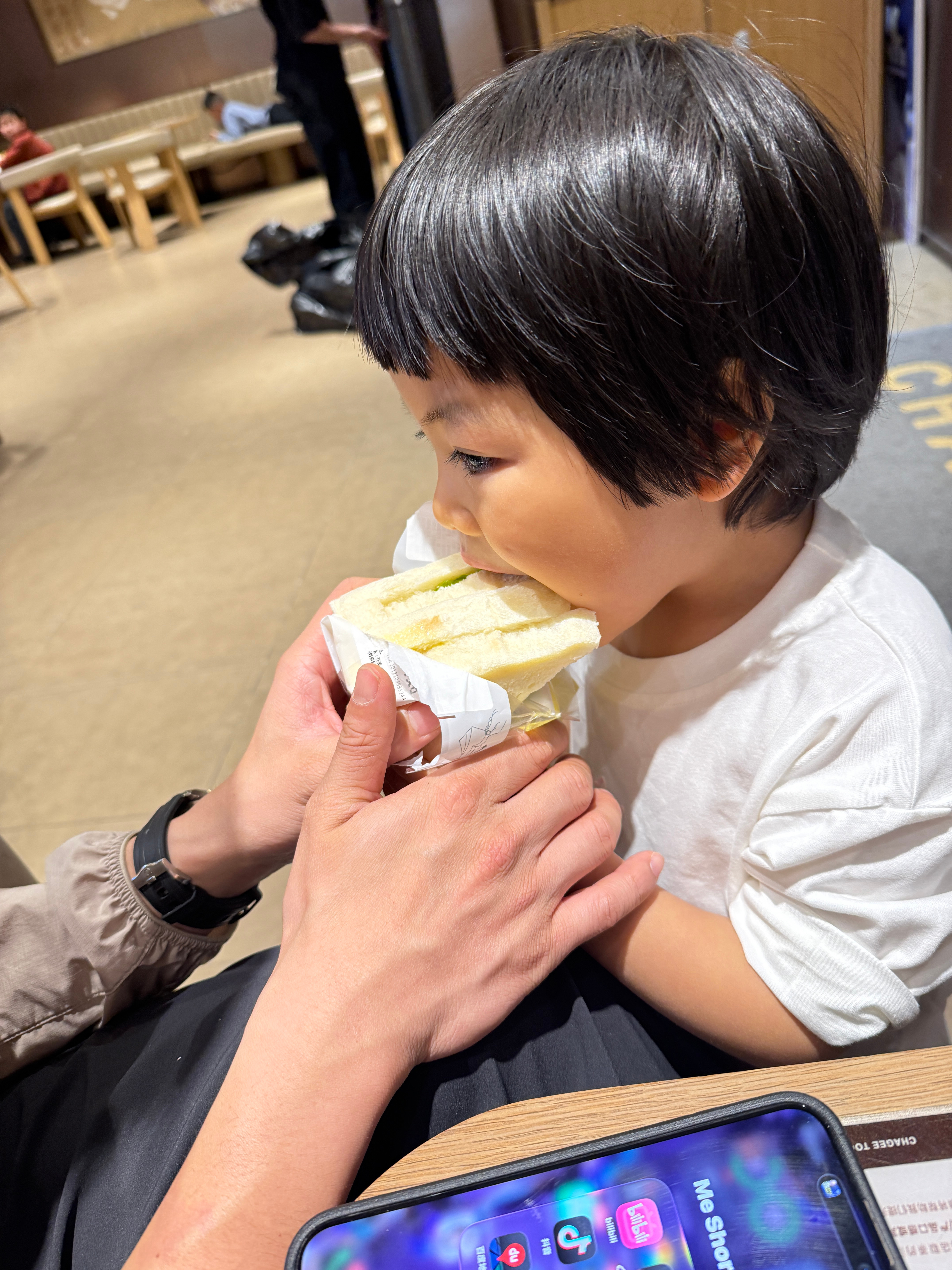 我们每次出门吃这种大油饭都会给球宝买三明治吃,孩子的味蕾吃不了味精