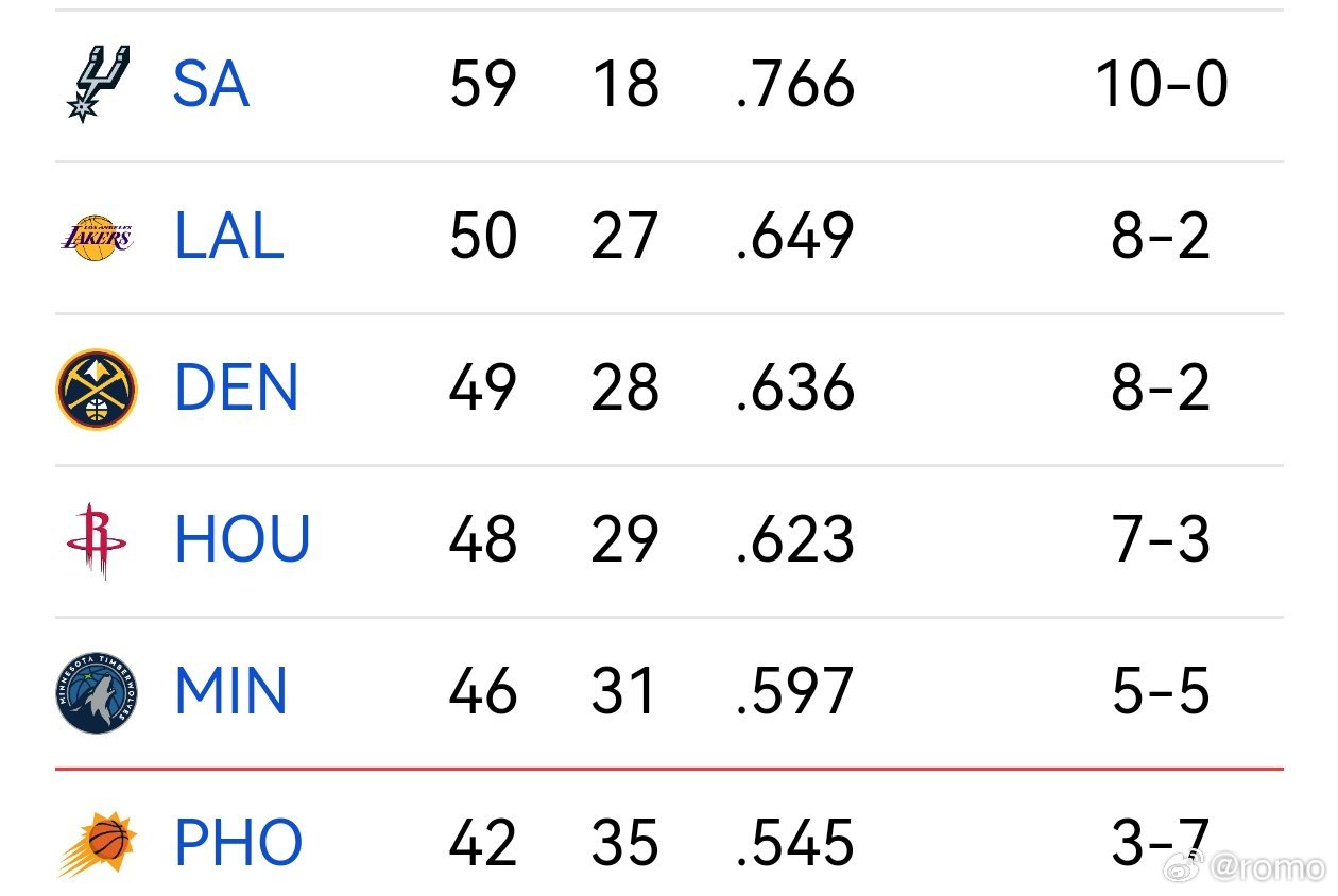 49-28 掘金剩余赛程:主场对马刺,主场对开拓者,主场对灰熊,主场对雷霆,客场对马刺