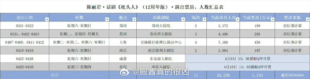 陈丽君领衔主演的话剧《枕头人》已开票11场,11场票房1133万元,单场场均票房已突破100万元,陈丽君简直剧场票房号召的神!