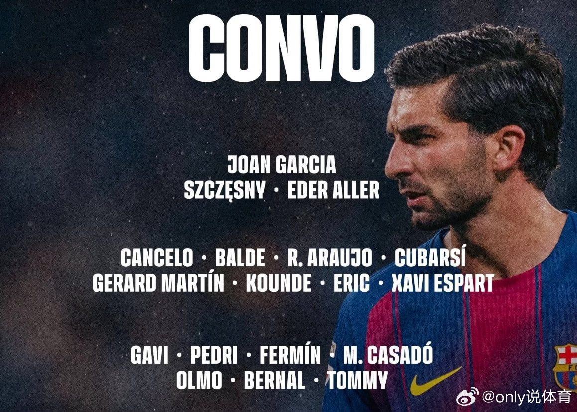 巴萨客战马竞球员名单:巴尔德、孔德复出,德容、拉菲缺席