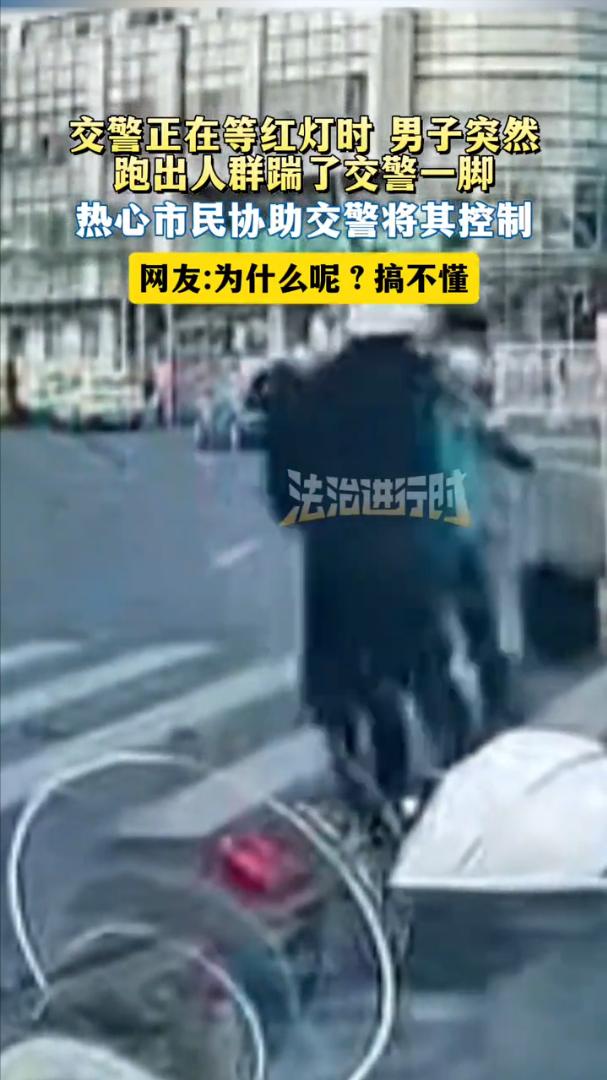 看不懂!一名交警骑着摩托在等红灯,一名男子突然从人行道上的人群中窜出,飞起就踹了交警一脚!网友:看不懂!这是为啥呢? 视频中,一名全副武装交警骑着摩托车正在路口等红灯,从过马路的人群中突然窜出一名男子,直接冲向交警,飞起一脚就向交警身体踹了过去。 这一脚由于突然,交警没有防备,结结实实的踹在了交警身体上。 好在交警在挨了一脚后反应迅速,放倒摩托车追击男子,最后在路人的帮助下被交警制服。 有人将视频发到了网上,也引发了网友热议,有的网友说,我当保安七八年,我见过好几次,啥也不说,啥也不问,上来就报复社会的。这种人不枪毙留着干嘛。 也有的说,只有一种可能,就是被。公安机关处理过。或者被交警把车给扣掉了。实在想不通。走在路上看见交警。突然一下就愤怒的不得了。突然就控制不住,非要冲上去踹一脚。结果有点严重。 还有的说,千万别是精神病人啊,不然,警察叔叔白挨那一脚了! 还有的说,说白了,他就想进去。找个管饭的地,想冷静冷静,压力太大了呗! 也有的说,车让贴单了肯定! 也有的说,应该是被追债了,局子里待十五天最起码安全啊! 有人可能会说,是不是交警之前执法得罪过他?是不是有什么前因后果? 就算有,你可以投诉、可以行政复议,甚至可以去法院起诉——法治社会给了每个人充足的维权渠道。 但你没有。你选择了一种最原始、最野蛮的方式——暴力。 这一脚踹在交警身上,伤的不仅是身体,更是对执法权威的践踏。 说明社会上确实有那么一部分人,法治意识淡薄,情绪管理失控,遇事第一反应不是讲道理,而是动手。 他们可能平时受了不少气,可能对某些执法行为有怨言,但把火撒在一个等红灯的交警身上,这算什么本事? 最后说一句:那位踹人的大哥,不管你有什么理由,这一脚,你真的错了。 错的代价是法律的严惩,还有终身的污点!