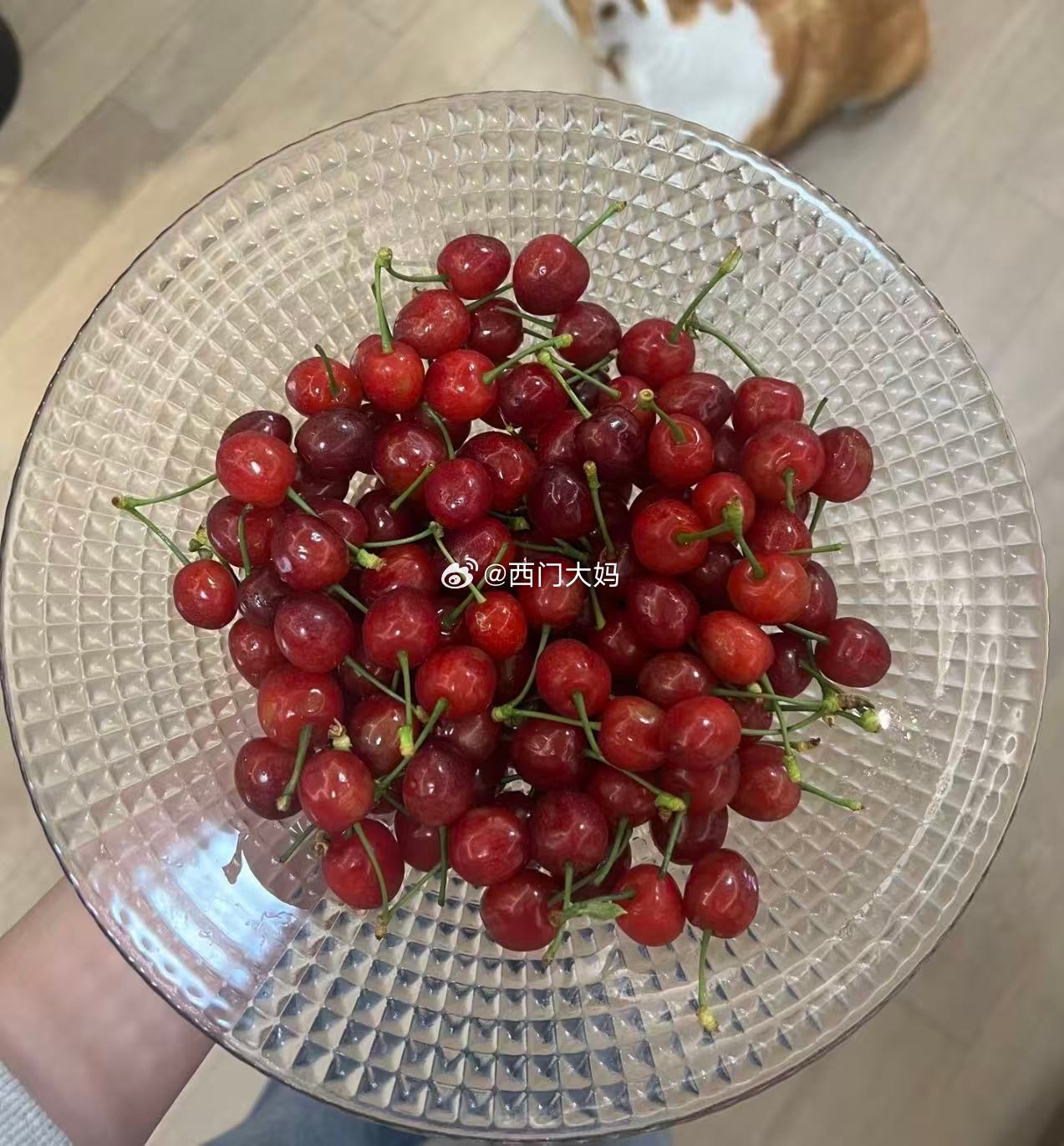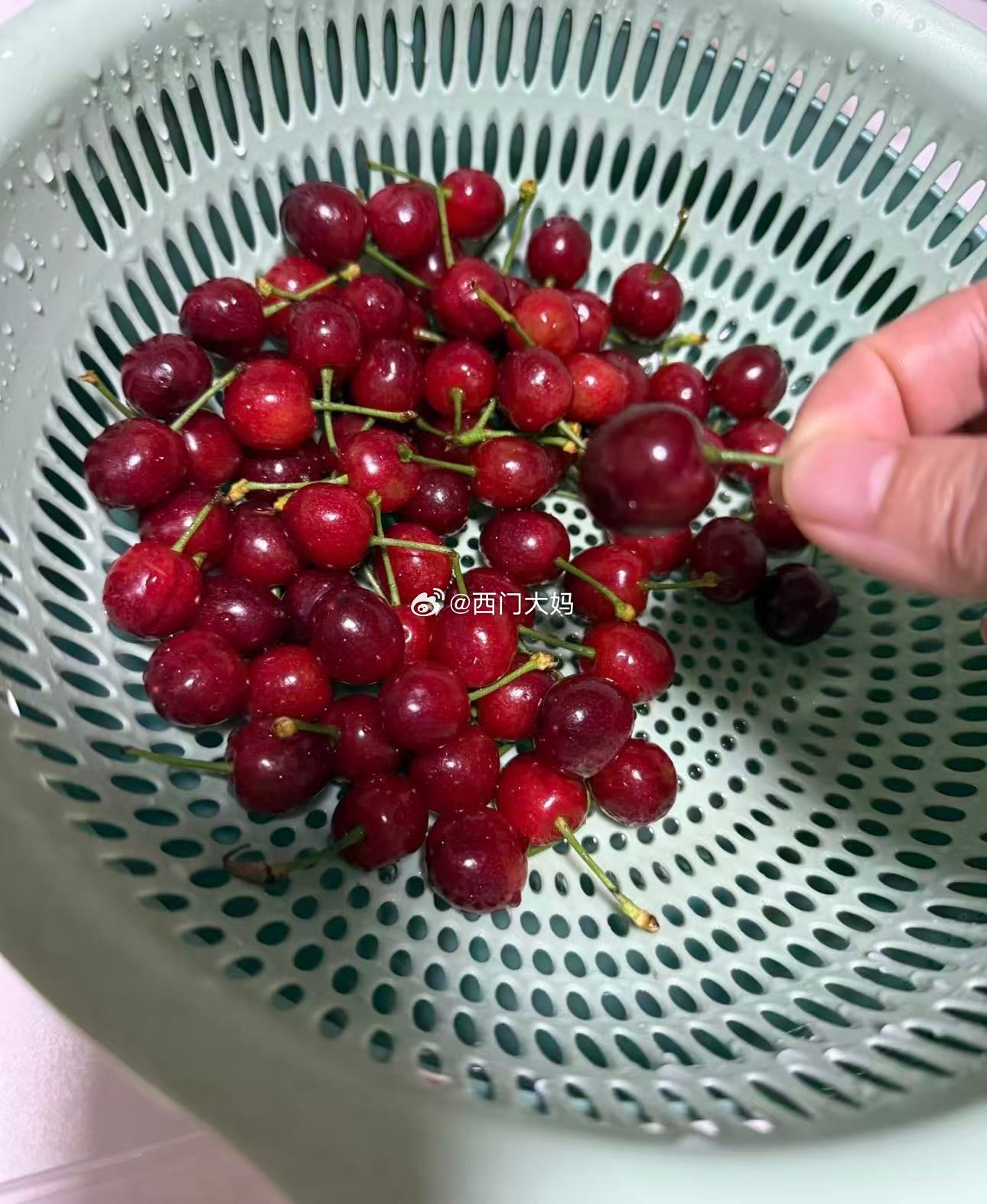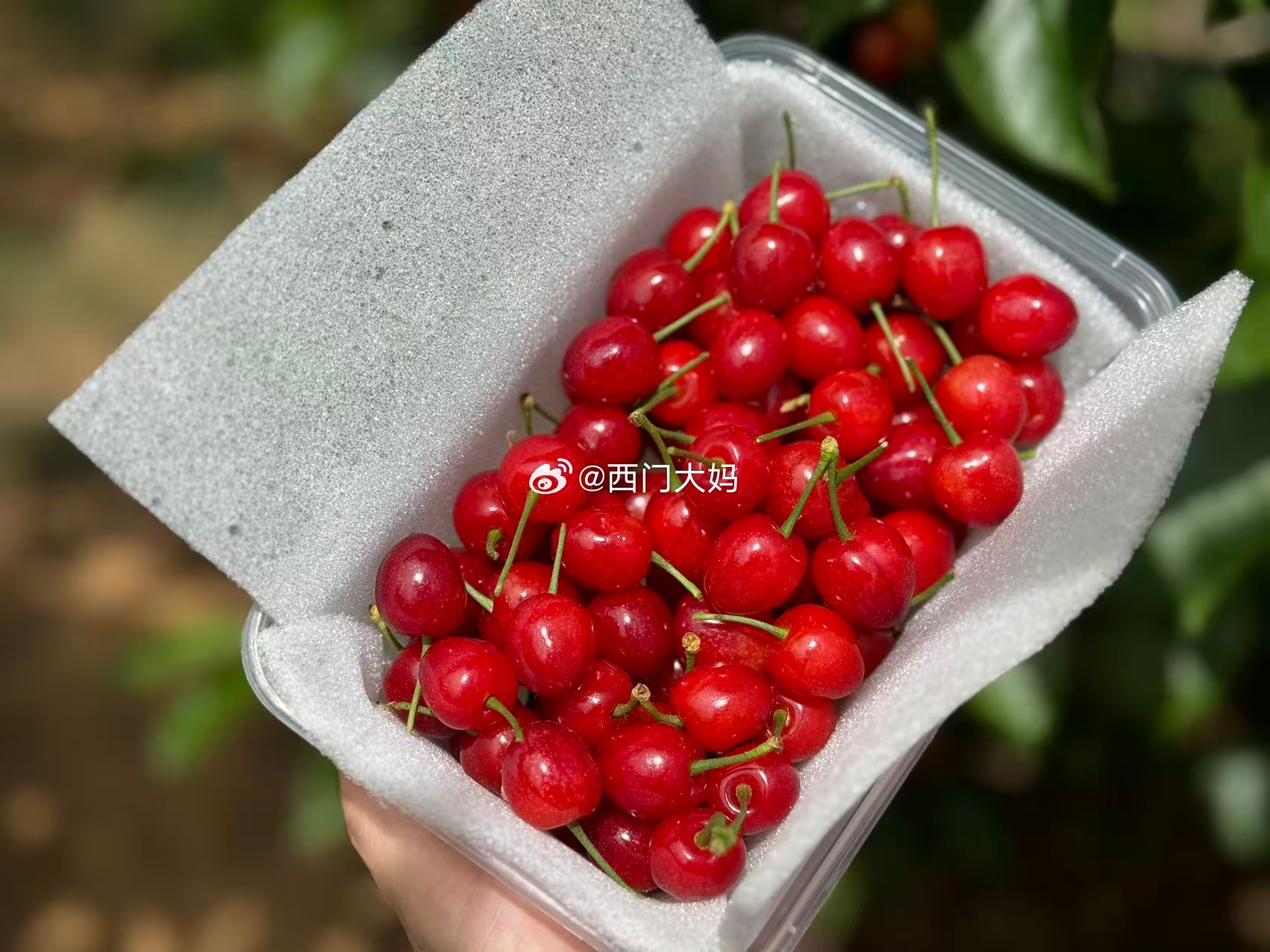 很嫩的小樱桃,暗红色的很甜,红色的略有点酸~放一天差不多就变暗红色了 ,但这个樱桃就是很难保存,收到尽快吃!今天没下雨了,晚上果农就去踩了!