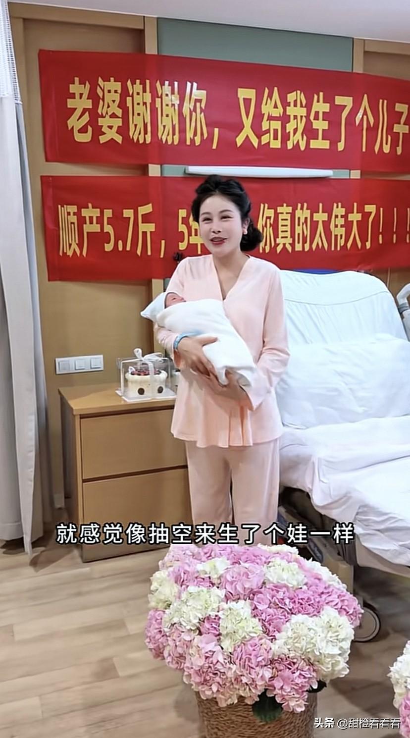 宋玉希产后第二天,抱着孩子下床,跟普通人没什么区别,还抱着孩子在地上走来走去,床后面还有老公给写的横幅,仪式感拉满,小宝宝出生第二天,五斤多的宝宝看起来也不是很小。 不的不说,在条件好的地方生孩子确实会舒服很多,医生护士助产师好几个,老公陪产,住的也舒服,单人套房洗手间一应俱全,怪不得五年生四胎呢!