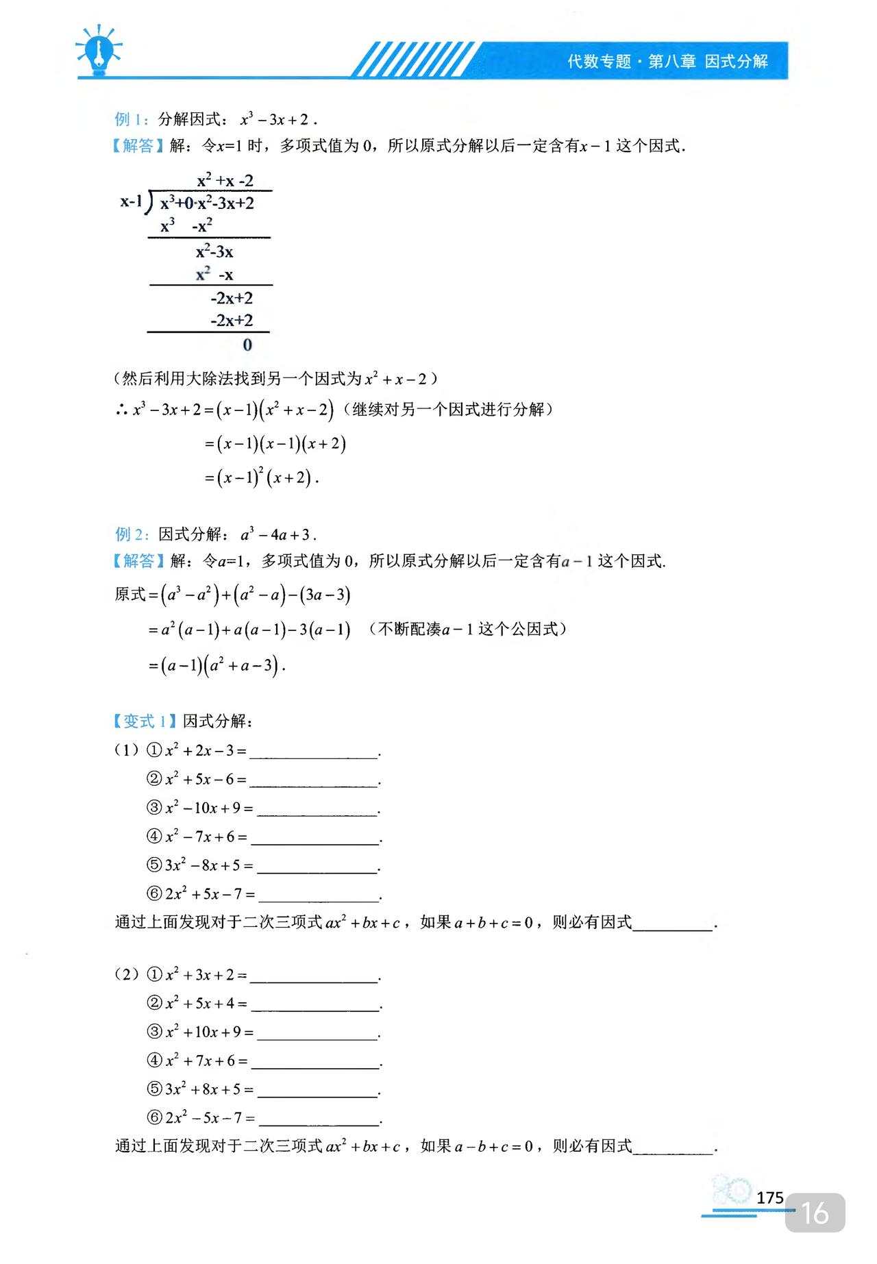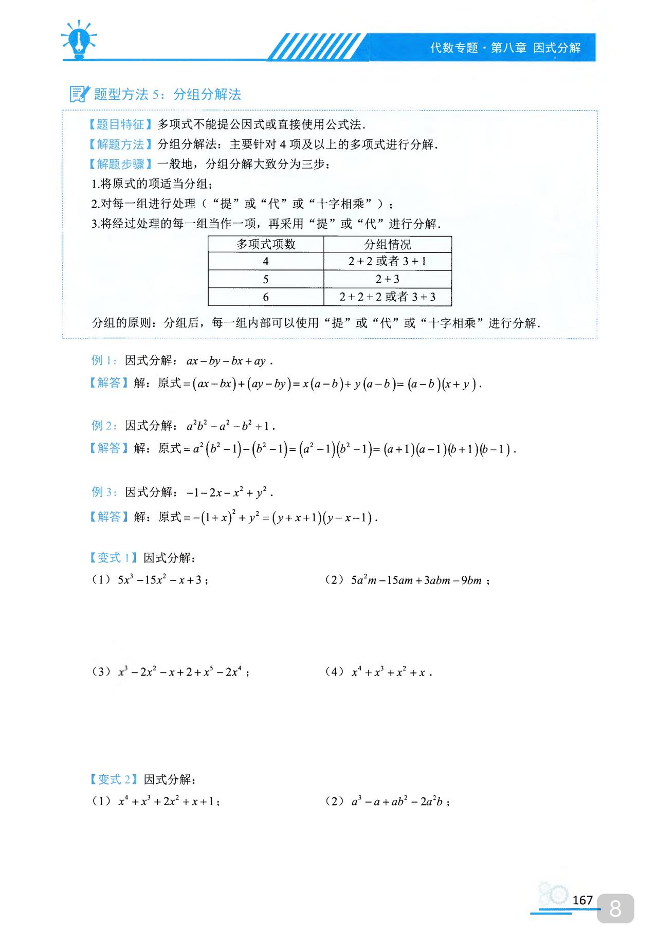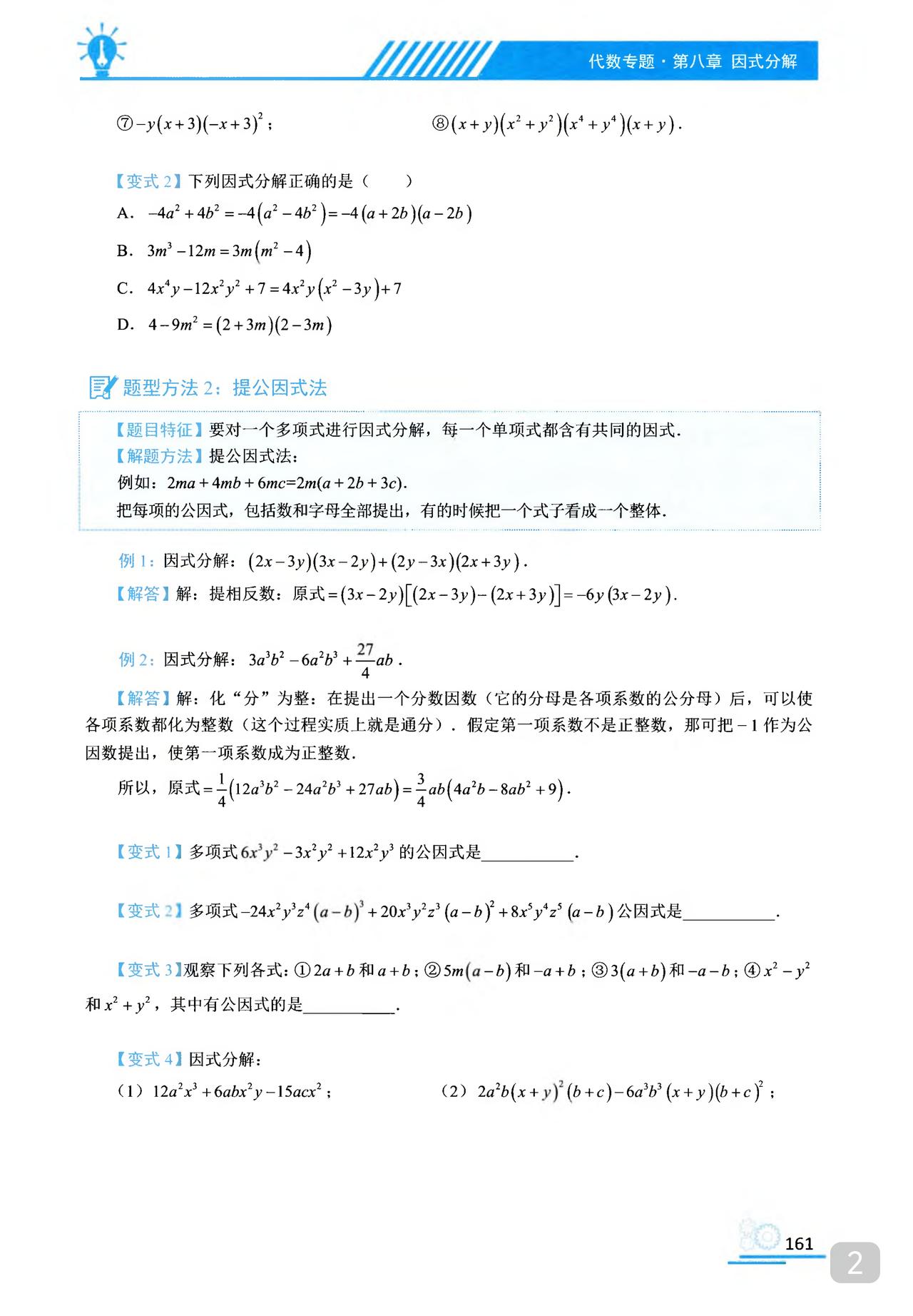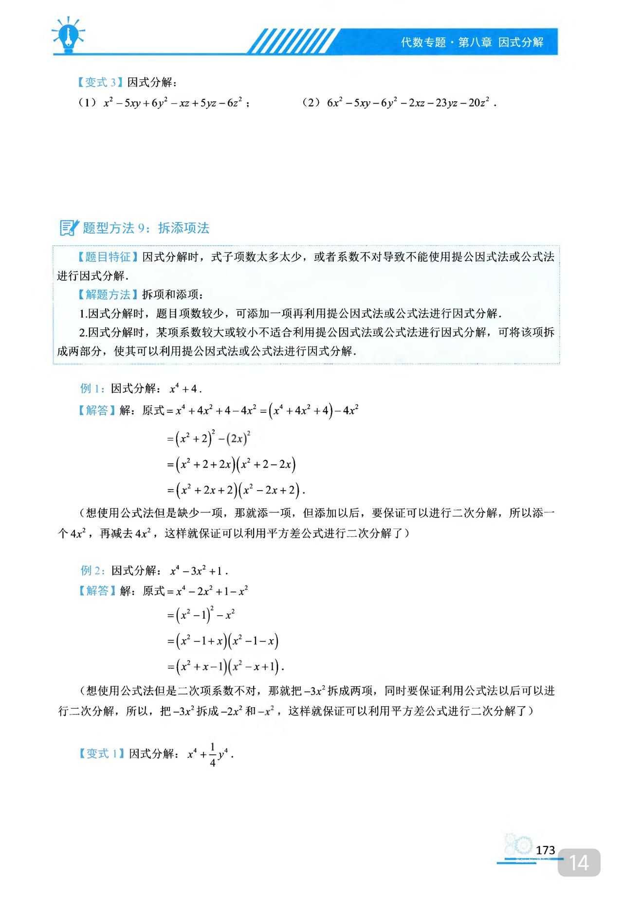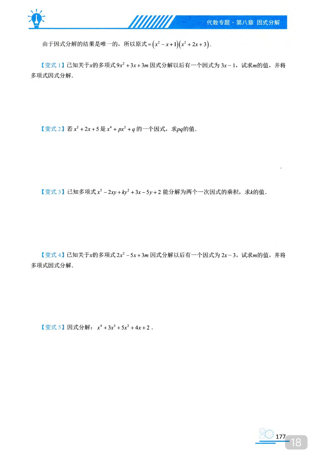 我推的书不多 《初中数学题型方法全归纳》是我常推的 因为它足够好 真正的全归纳 想中考胜出 刷它的一半就够了 想打竞赛 刷它的全部 以因式分解为例 分门别类一次让你刷透 初中数学题型方法全归纳397种题型方法(带397节视频题库系统)