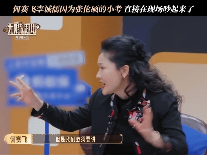 《无限超越班》这期最大的笑点是李诚儒和何赛飞给的。俩人因为一个说东一个说西吵得面红耳赤,刘涛的表情从震惊到无奈到想逃。何赛飞突然意识到吵得没意义,笑着说“他们就是来听我们讲这些的”,全场跟着笑翻。李诚儒何赛飞录节目吵起来了