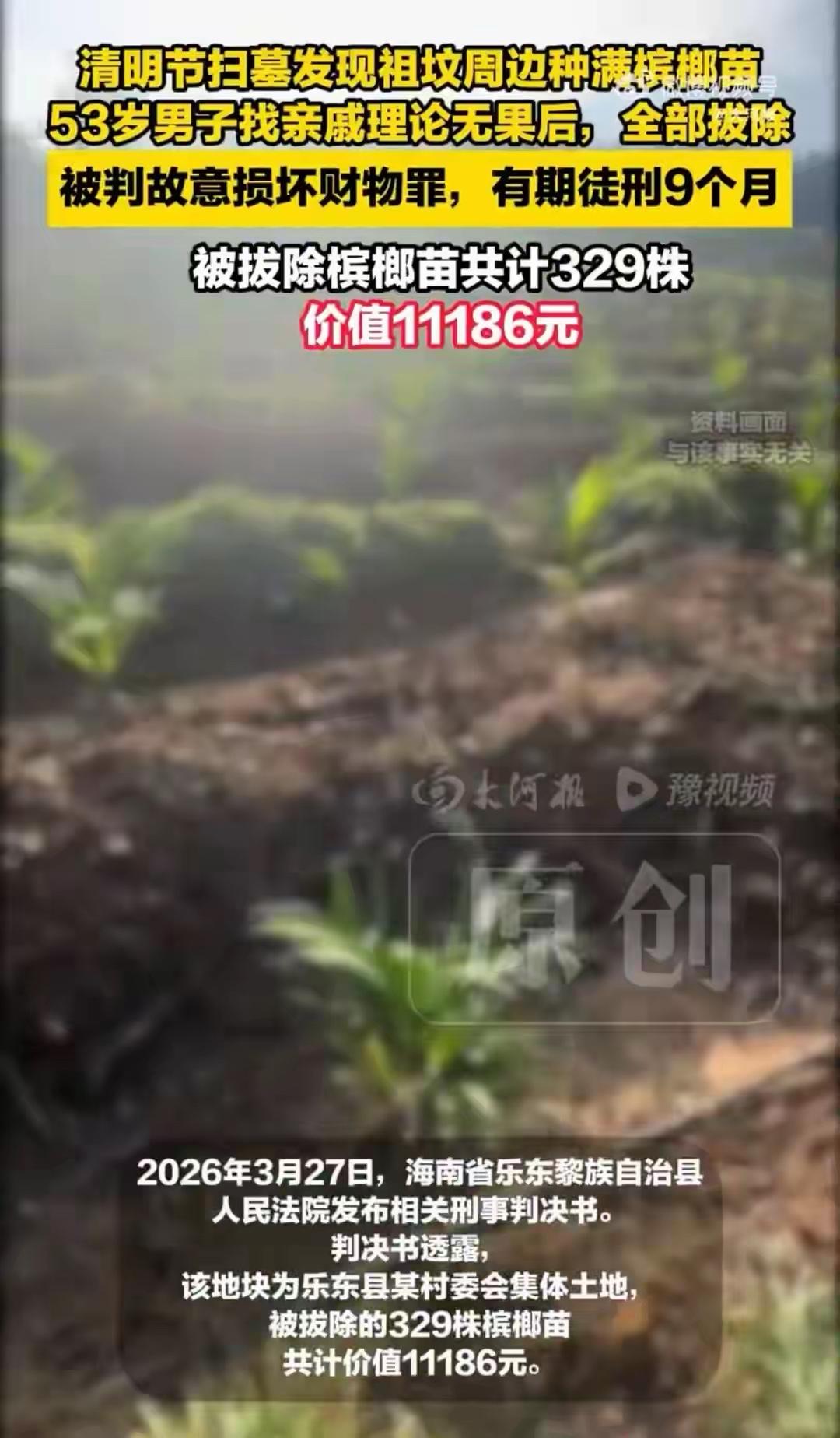 只能说这位男子是吃了法律意识淡薄的亏,虽然是在你家祖坟附近,但那些土地是属于别人的。也正是如此,你拔人家的树苗肯定是会被判故意损坏财物罪的,这也是判你获刑9个月,缓刑一年,实际上也是量刑很轻了。 但确实有些人对自家祖坟非常看重,也正是如此,国家一直在想办法解决此事。就是改变大家的思想,不要让思想观念那么的迂腐陈旧。如今国家都在推行海葬,有了海葬之后,这种祖坟闹剧就能够解决很多。 所以说海葬还真的是能解决很多的问题,反正我个人是非常支持海葬的。这样以后也不用扫墓了,能减少下一辈人很多的压力,
